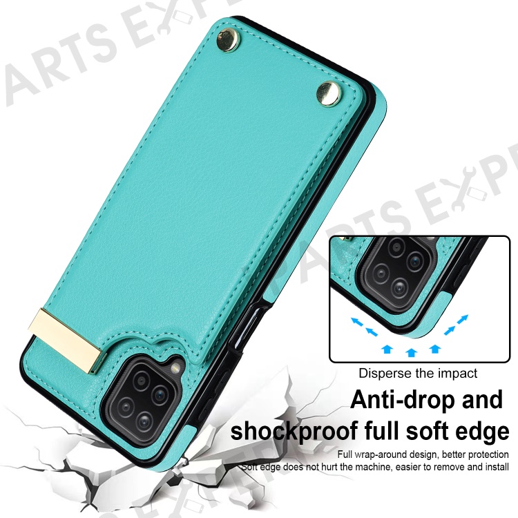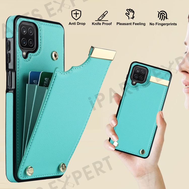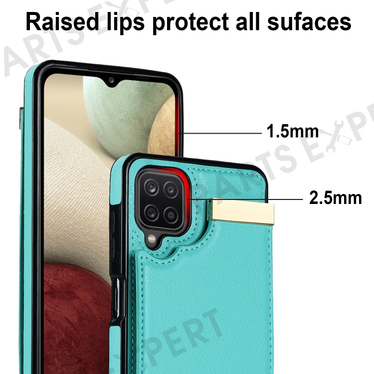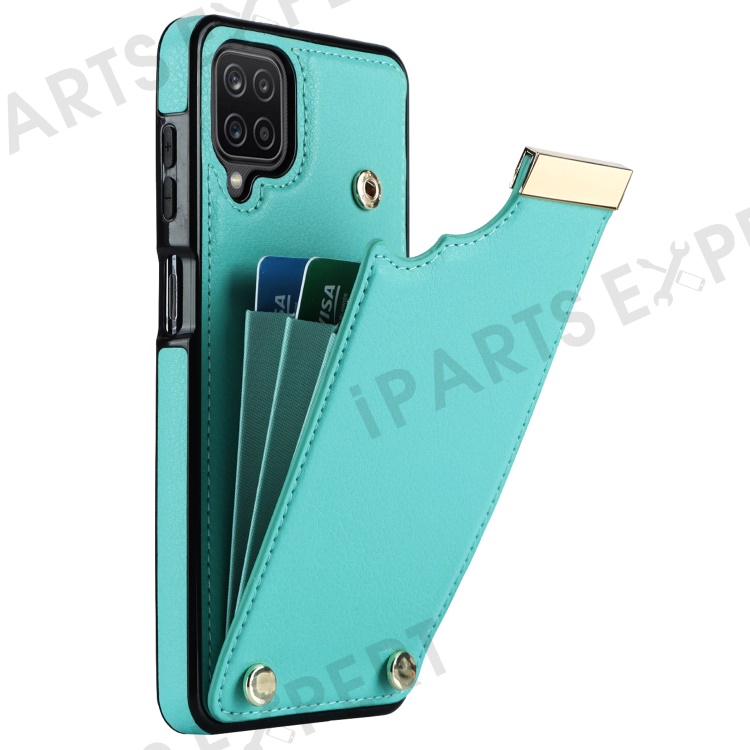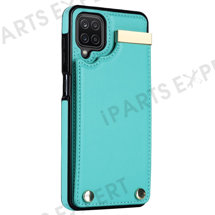 For Samsung Galaxy A12 Case Anti-fall TPU+PU Leather Phone Cover with Metal Hardware Decor - Mint Green