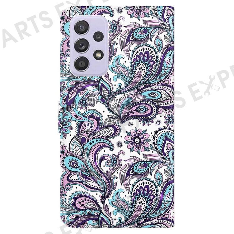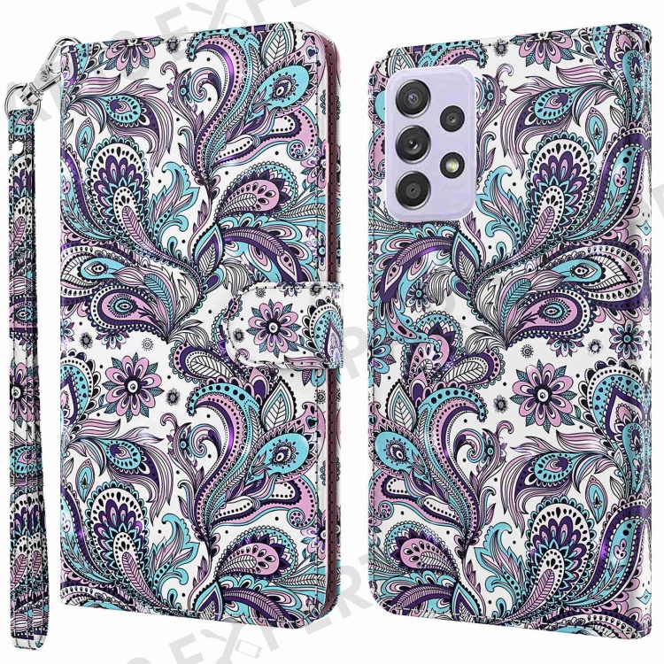 For Samsung Galaxy A13 4G / 5G 3D Pattern Printing Wallet Phone Case PU Leather Stand Magnetic Closure Cover with Strap - Purple Impatiens