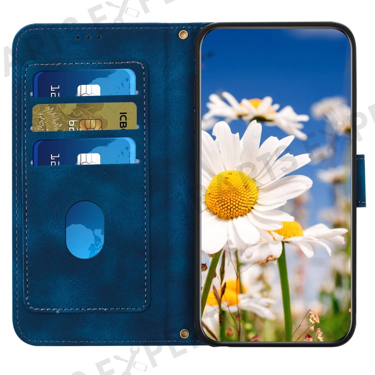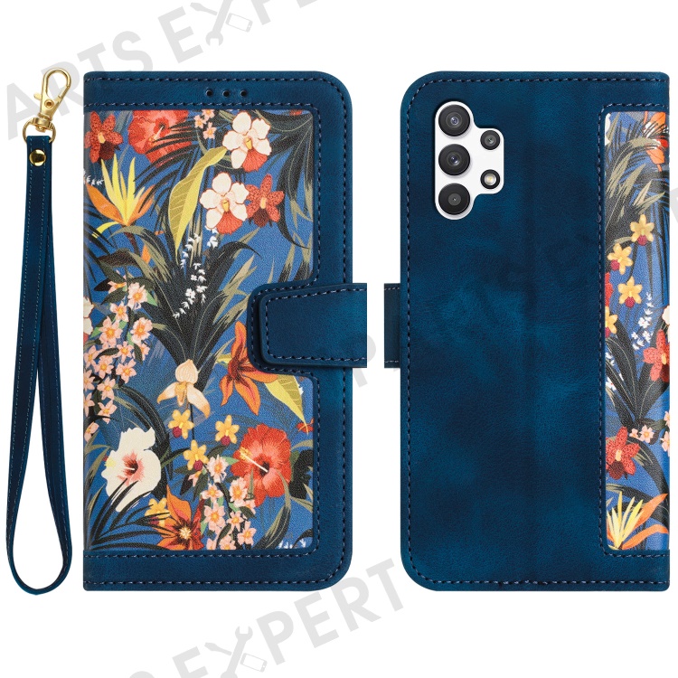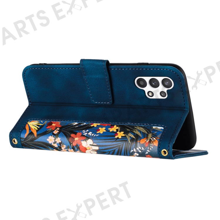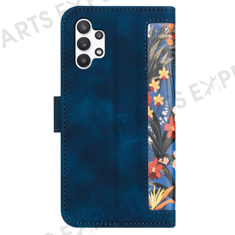 For Samsung Galaxy A13 4G / 5G Card Slots Phone Stand Case PU Leather Flower Pattern Printing Cover - Dark Blue