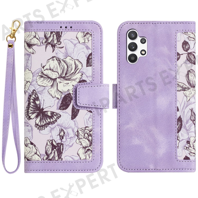 For Samsung Galaxy A13 4G / 5G Card Slots Phone Stand Case PU Leather Flower Pattern Printing Cover - Light Purple