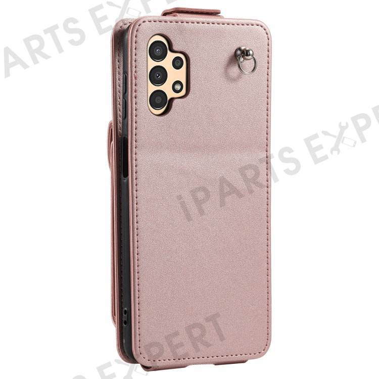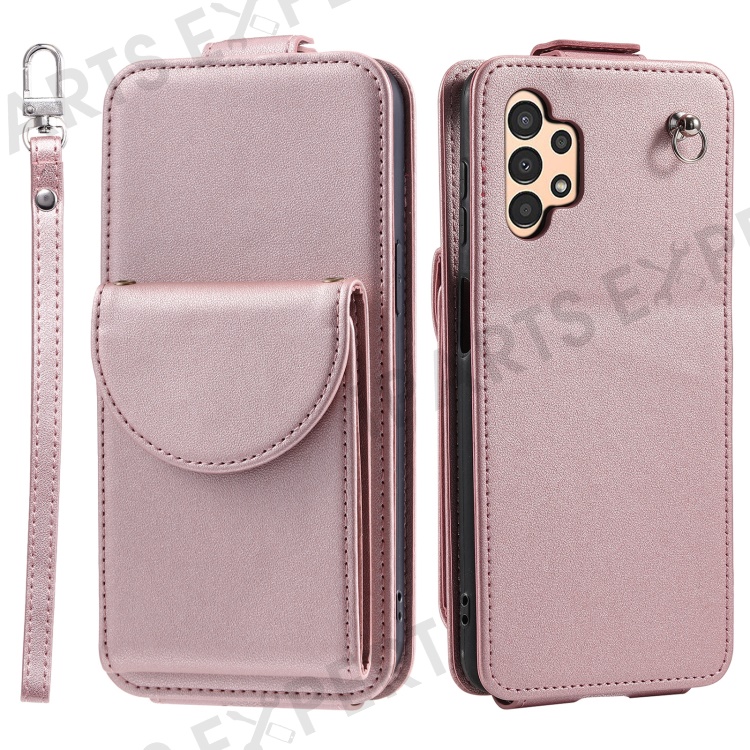 For Samsung Galaxy A13 4G / 5G Case Leather Vertical Flip Phone Cover with Straps - Rose Gold