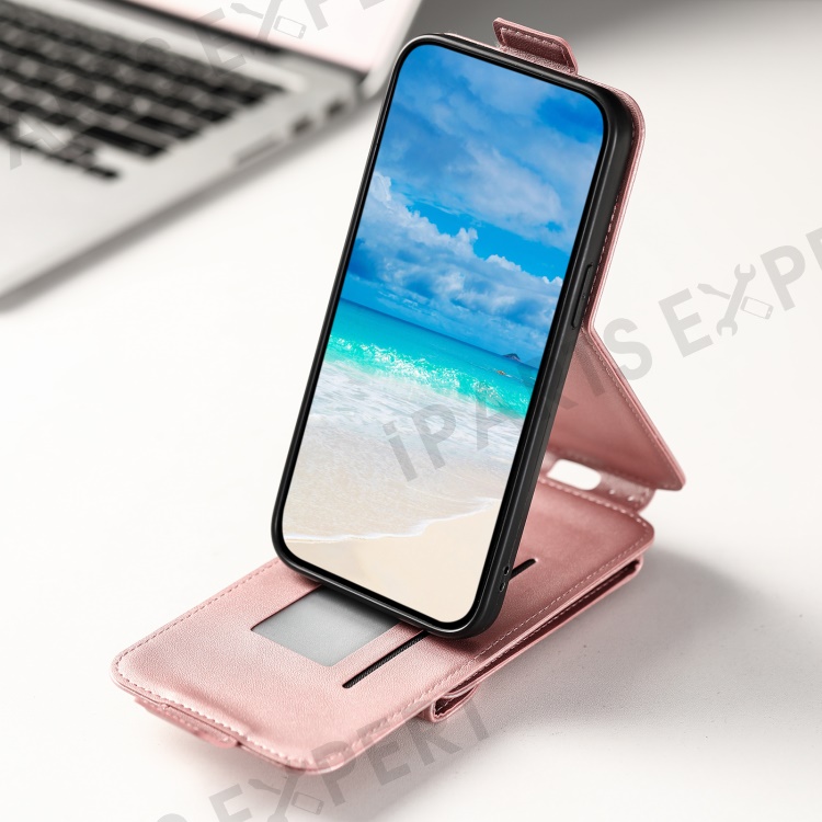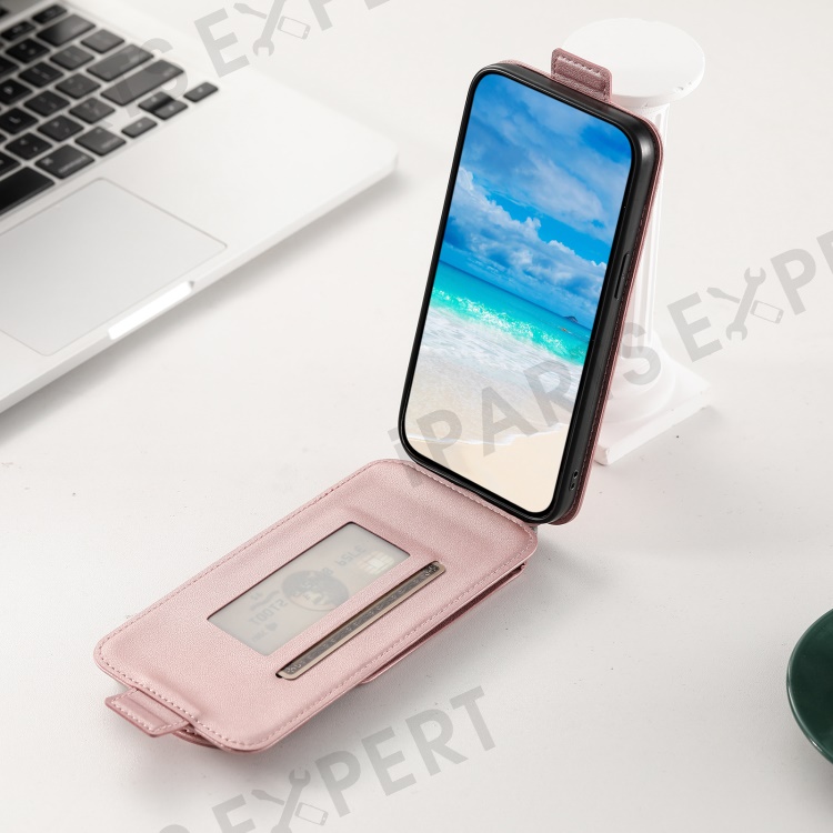 - Vertical-flip type phone case, opens down for easy operation with one hand