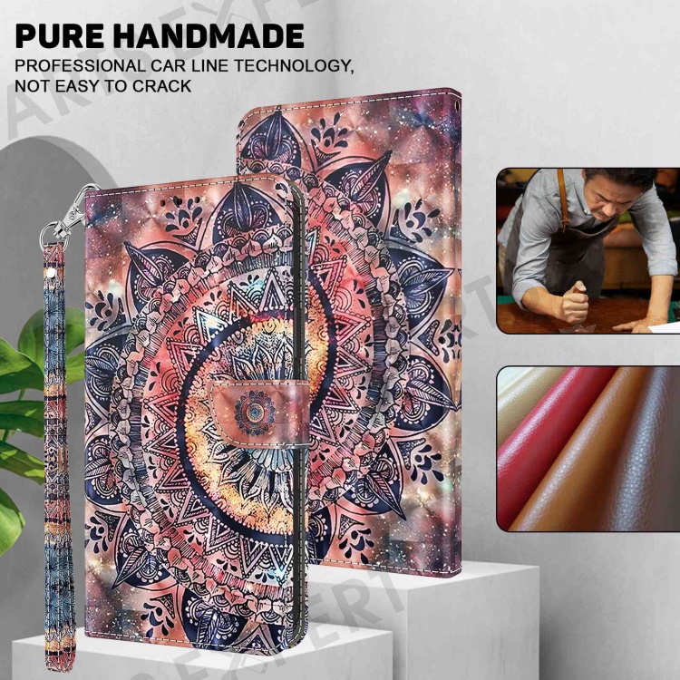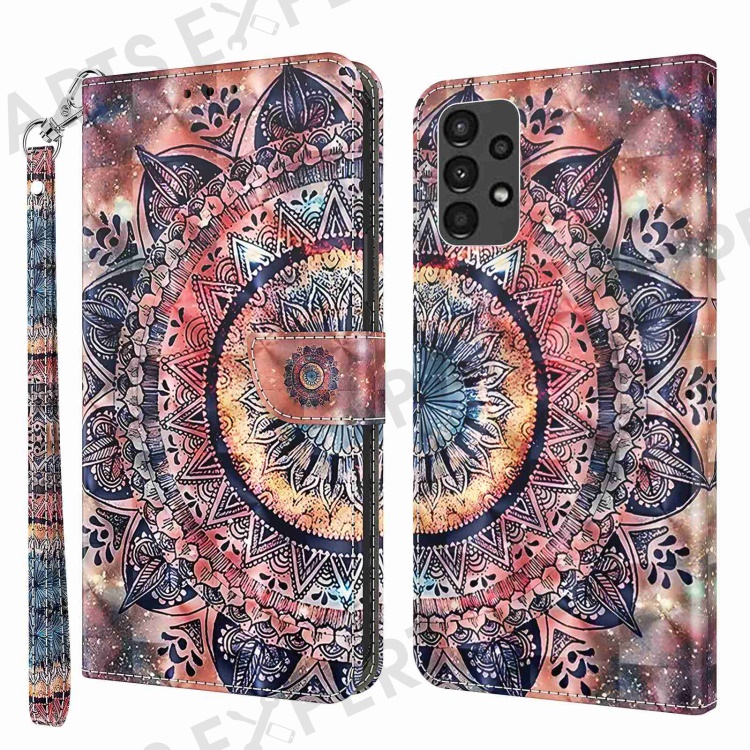 For Samsung Galaxy A13 4G / 5G / A04s 4G (164.7mm) PU Leather Flip Case 3D Pattern Printing Stand Wallet Cover with Strap - Colorful Mandalas