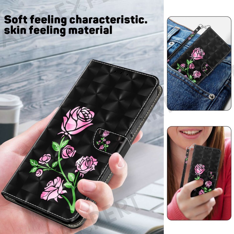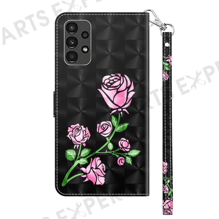 For Samsung Galaxy A13 4G / 5G / A04s 4G (164.7mm) PU Leather Flip Case 3D Pattern Printing Stand Wallet Cover with Strap - Rose