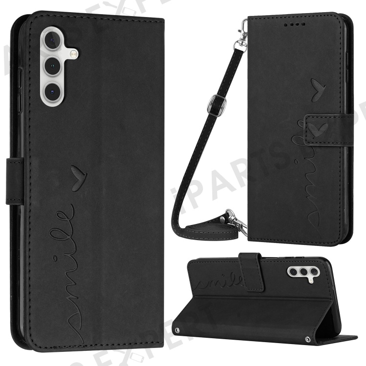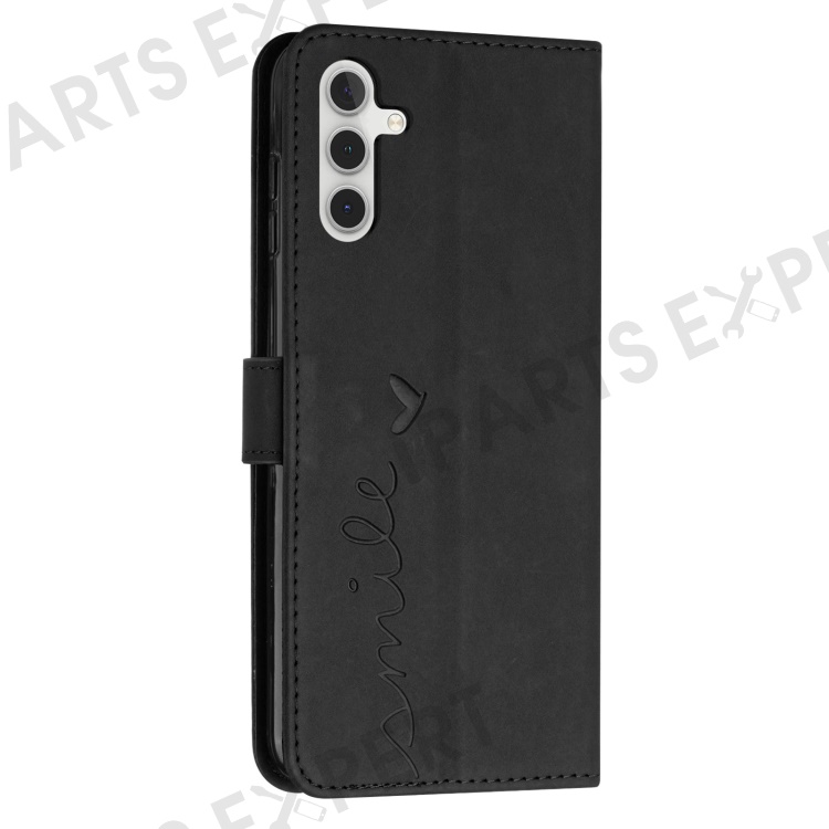 For Samsung Galaxy A13 5G / M13 5G / A04s 4G (164.7mm) / A04 4G (164.4mm) Imprint Heart Shape Wallet Case PU Leather Stand Phone Cover - Black