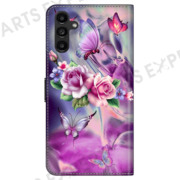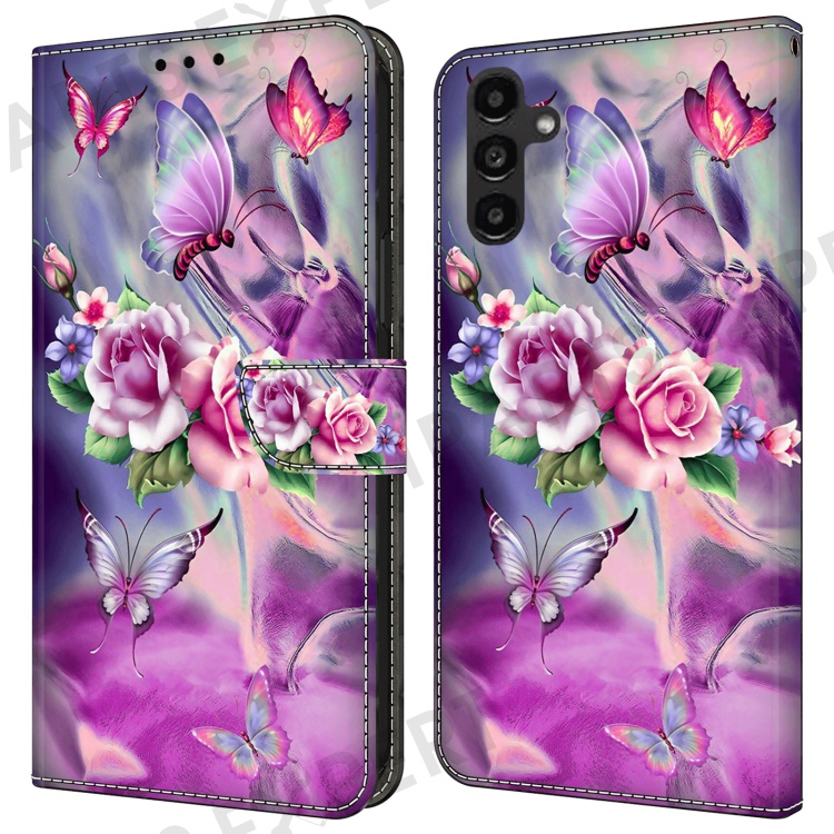 For Samsung Galaxy A14 4G / 5G Leather Wallet Case Stand 3D Pattern Printing Protective Phone Cover - Butterflies / Flowers