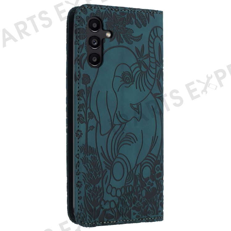 For Samsung Galaxy A14 5G / 4G Case Elephant Pattern Wallet Stand Leather Cover - Green