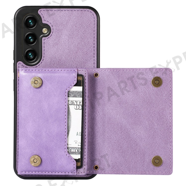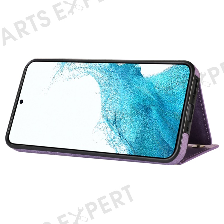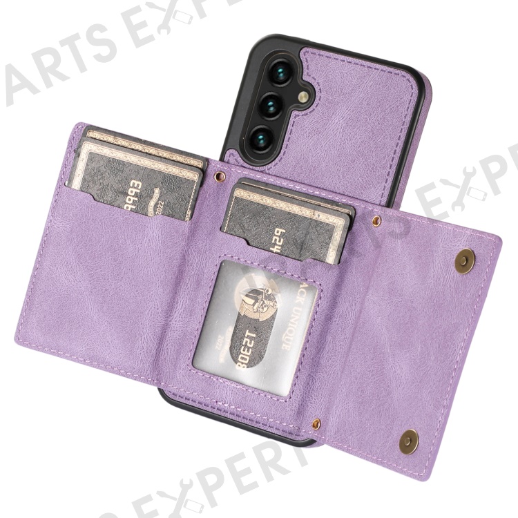 For Samsung Galaxy A14 5G / 4G Case RFID Blocking Wallet Leather Coated TPU Phone Cover - Purple