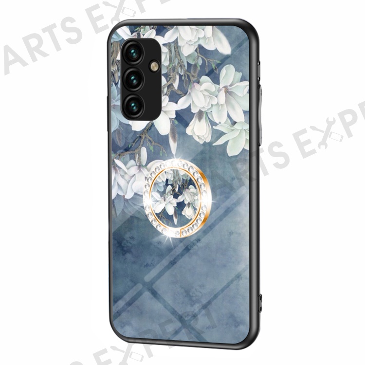 For Samsung Galaxy A14 5G / A14 4G Flower Pattern Phone Cover Tempered Glass+PC+TPU Case with Kickstand - Chinese Rose