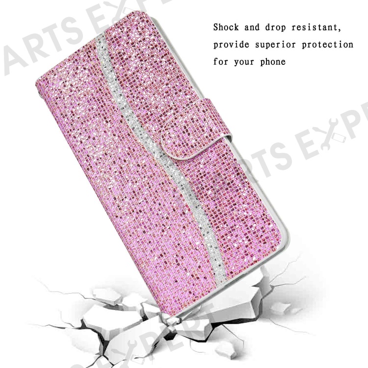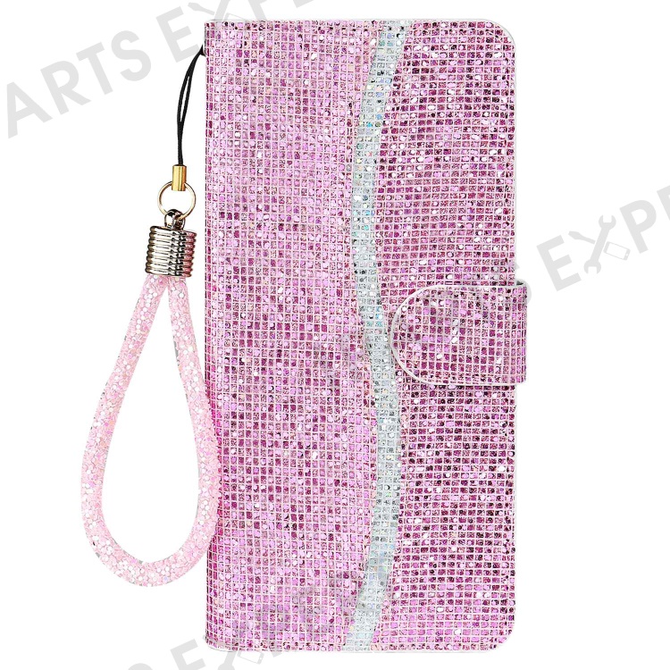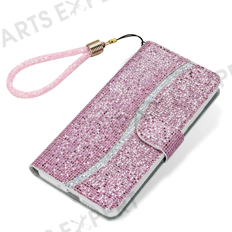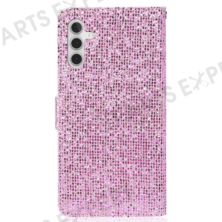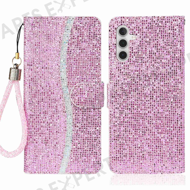 For Samsung Galaxy A14 5G / 4G Phone Case Glittery Powder PU Leather Foldable Stand Wallet Style Flip Shell with Wrist Strap - Pink