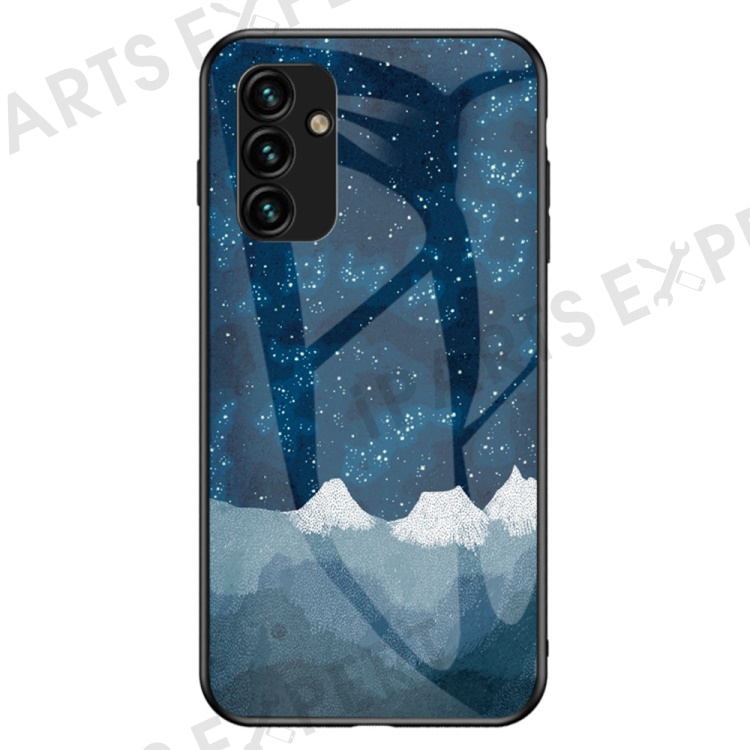 For Samsung Galaxy A14 5G / A14 4G Starry Sky Pattern Printing Tempered Glass Phone Case Anti-scratch Hard PC+Soft TPU Back Cover - Scattering Starry