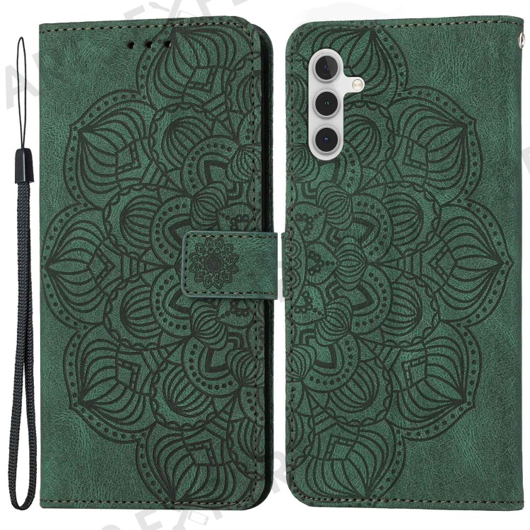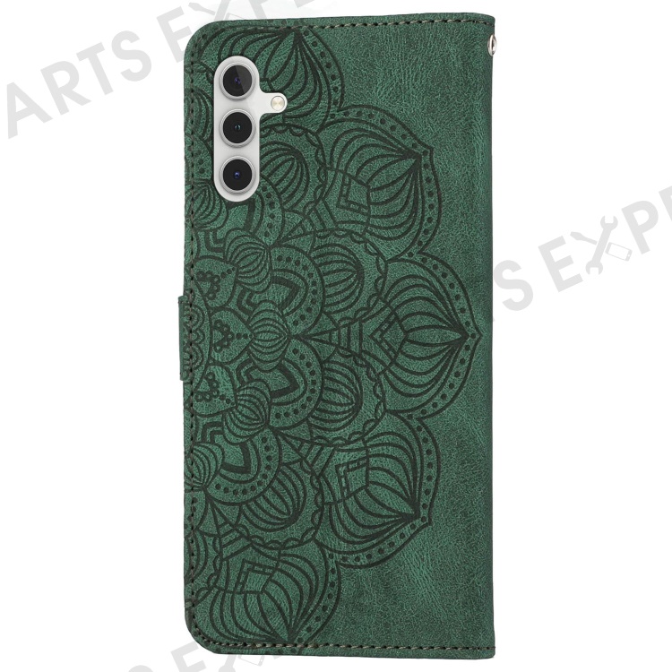 For Samsung Galaxy A14 5G / 4G Wallet Case Imprinted Mandala Flower PU Leather Soft TPU Folio Flip Cover with Strap - Green