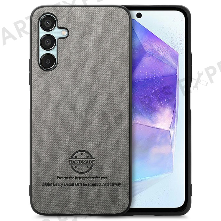 For Samsung Galaxy A15 4G / 5G Case Cloth Texture Leather+PC+TPU Anti-Drop Phone Cover - Grey