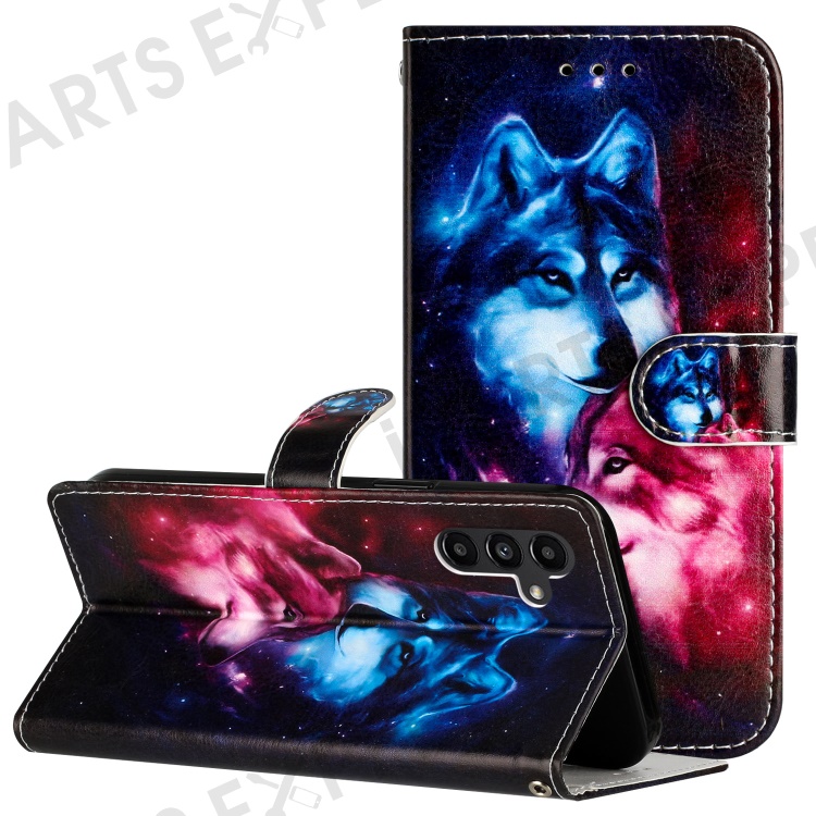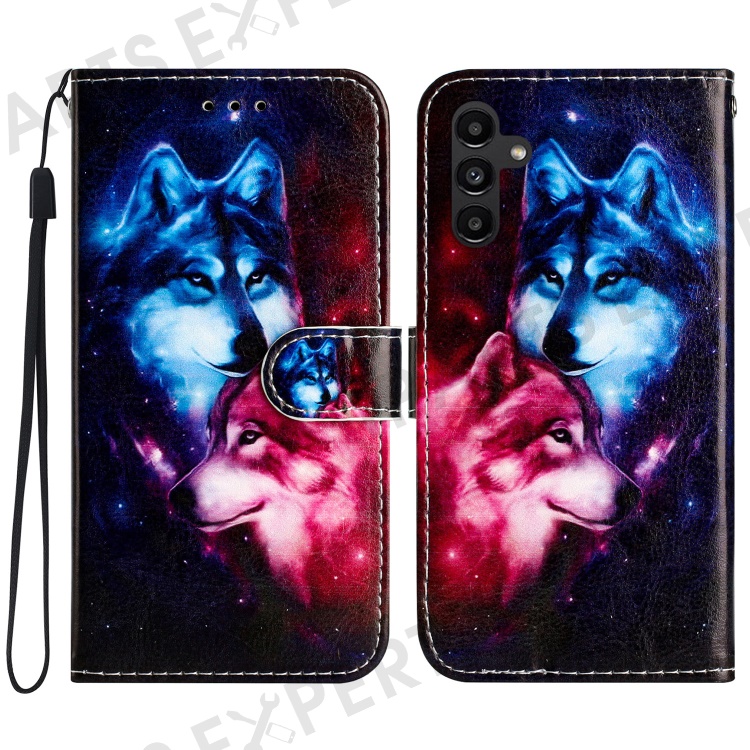 For Samsung Galaxy A15 5G Case Pattern Printing Wallet Flip Phone Cover - Couple Wolf