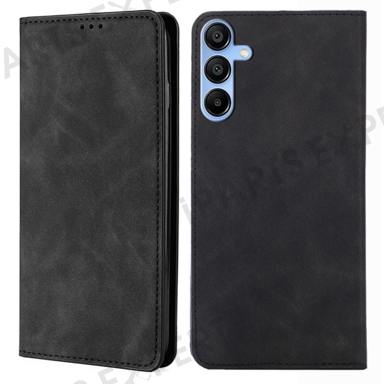 For Samsung Galaxy A15 5G / 4G Case PU Leather Stand Mobile Phone Cover with Card Slots - Black