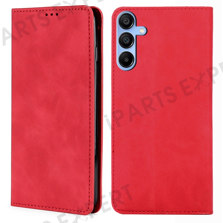 For Samsung Galaxy A15 5G / 4G Case PU Leather Stand Mobile Phone Cover with Card Slots - Red