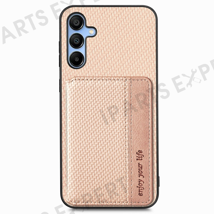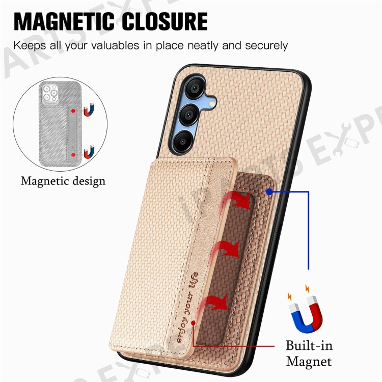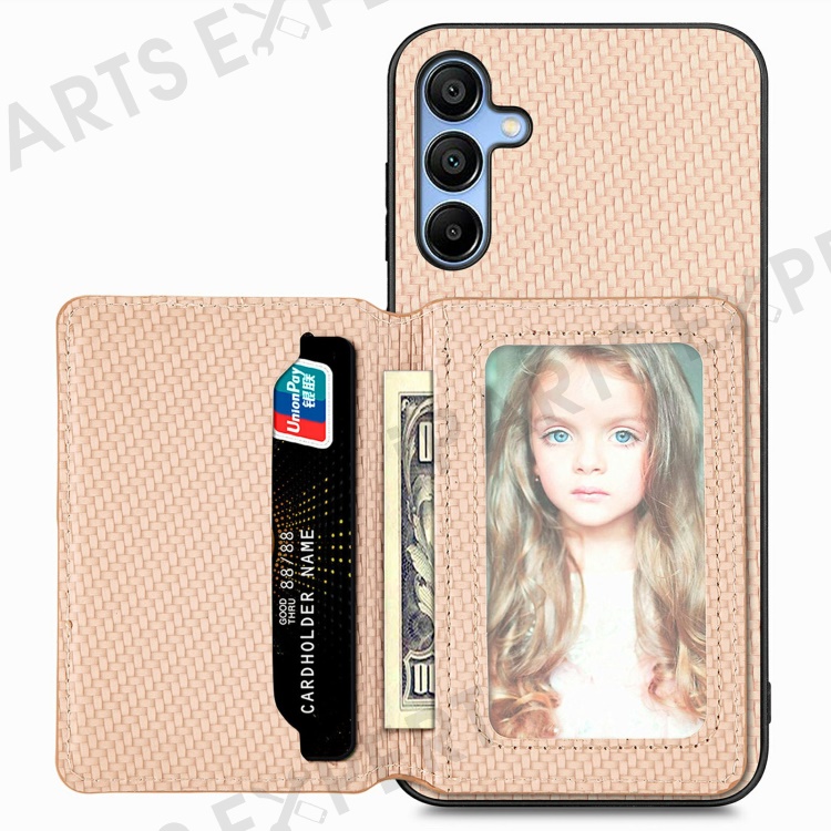 For Samsung Galaxy A16 4G / 5G Case RFID Blocking Card Holder Carbon Fiber Leather+PC+TPU Phone Cover - Apricot