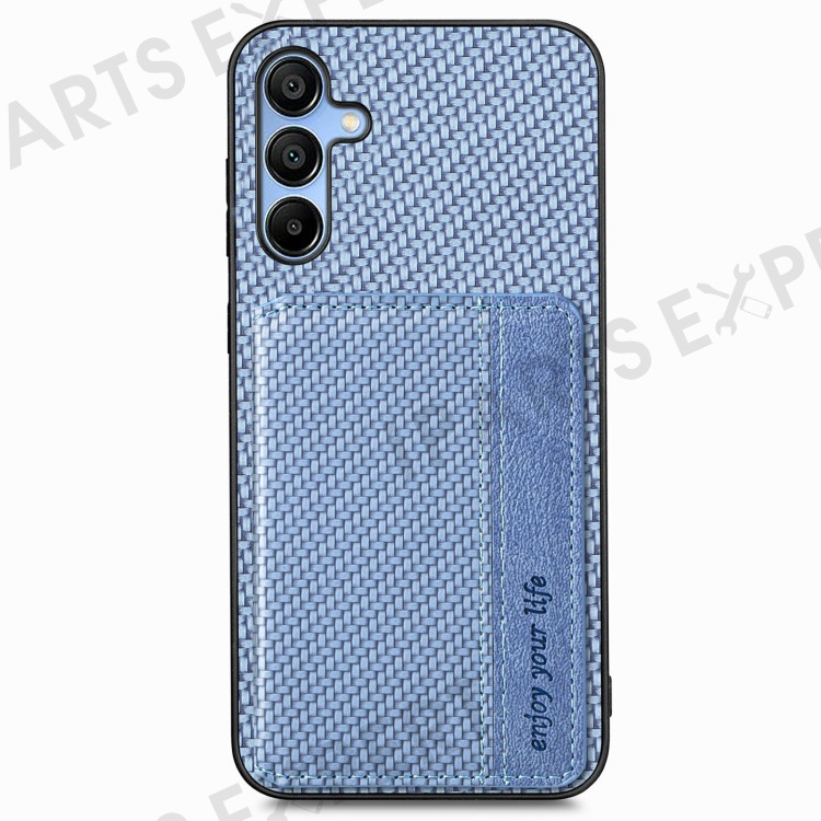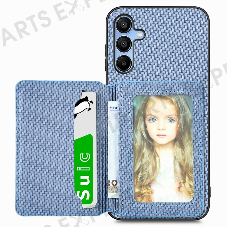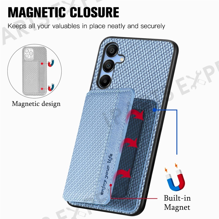 For Samsung Galaxy A16 4G / 5G Case RFID Blocking Card Holder Carbon Fiber Leather+PC+TPU Phone Cover - Blue