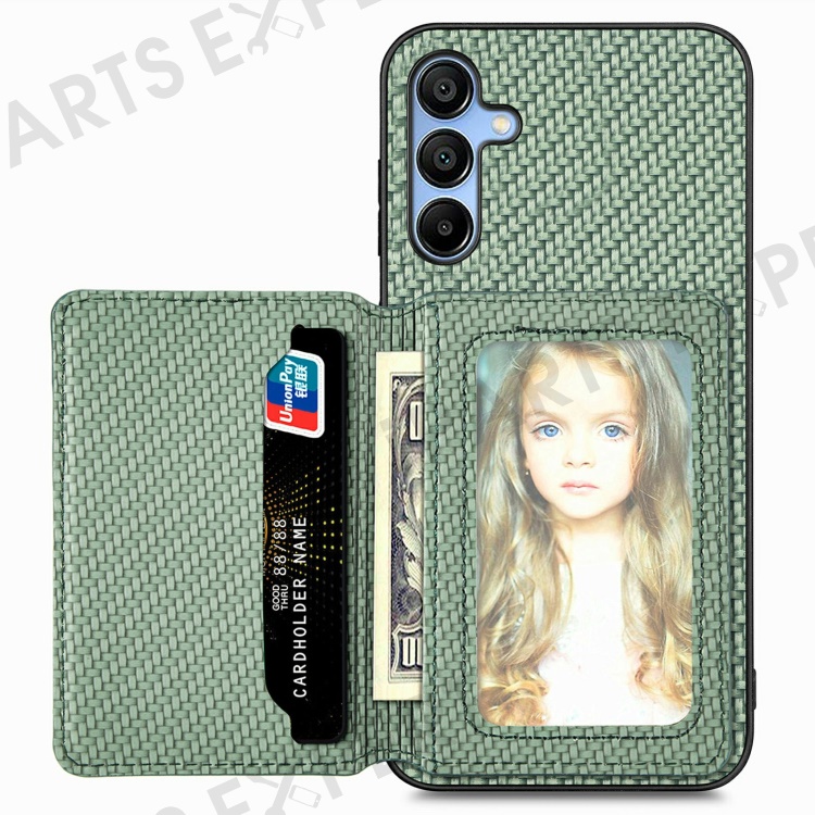 For Samsung Galaxy A16 4G / 5G Case RFID Blocking Card Holder Carbon Fiber Leather+PC+TPU Phone Cover - Green