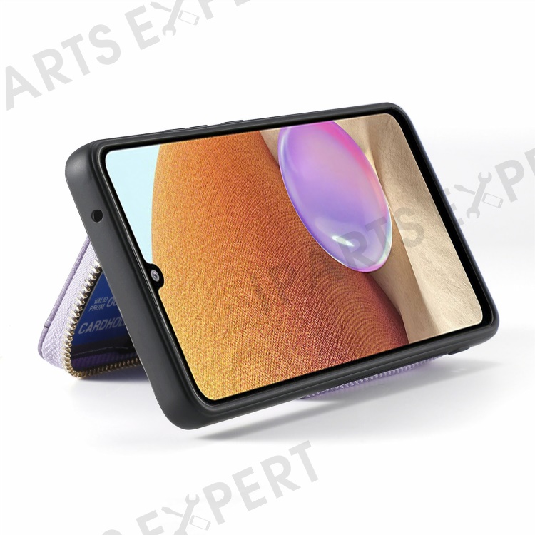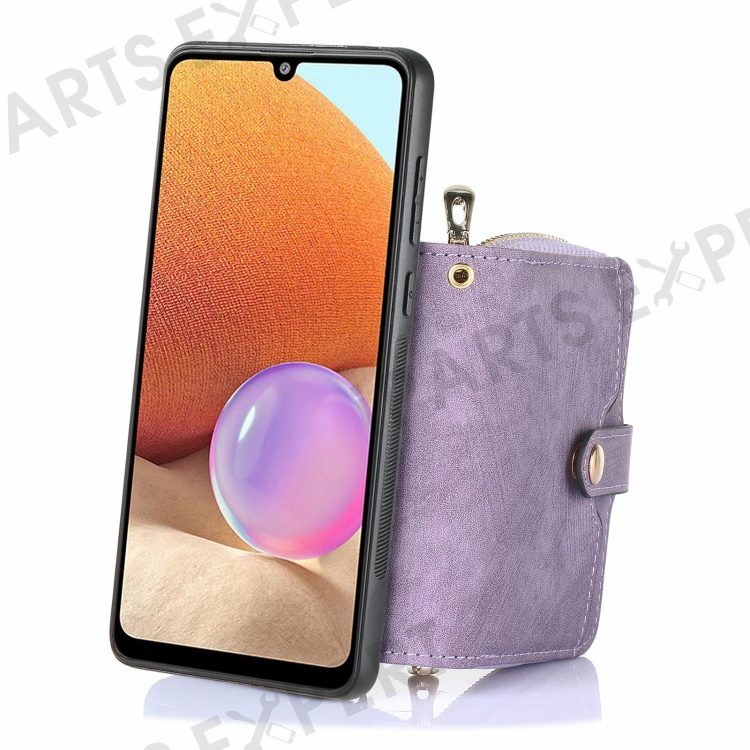 For Samsung Galaxy A16 5G / A16 4G Case Zipper Wallet Leather Phone Back Cover Kickstand with Shoulder Strap - Purple