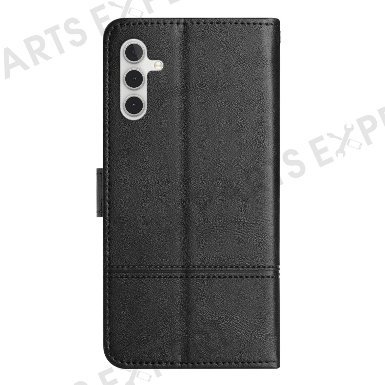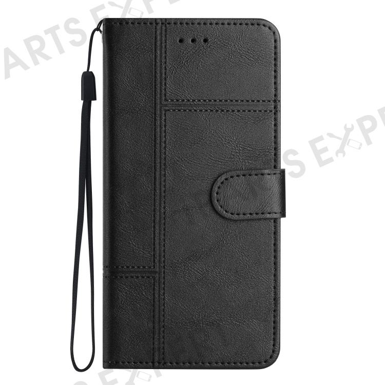 For Samsung Galaxy A16 5G / A16 4G Case Line Imprinted PU Leather Wallet Phone Cover - Black
