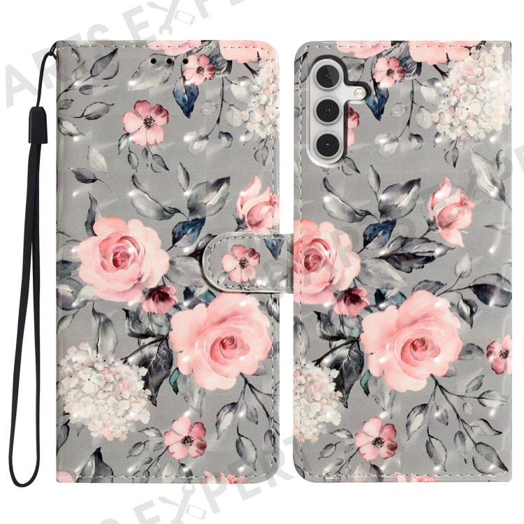 For Samsung Galaxy A16 5G / A16 4G Case PU Leather 3D Pattern Printing Wallet Phone Cover - Flowers
