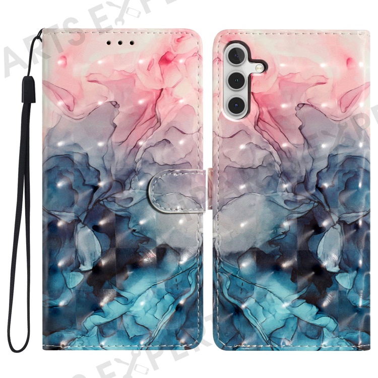 For Samsung Galaxy A16 5G / A16 4G Case PU Leather 3D Pattern Printing Wallet Phone Cover - Pink Blue Marble