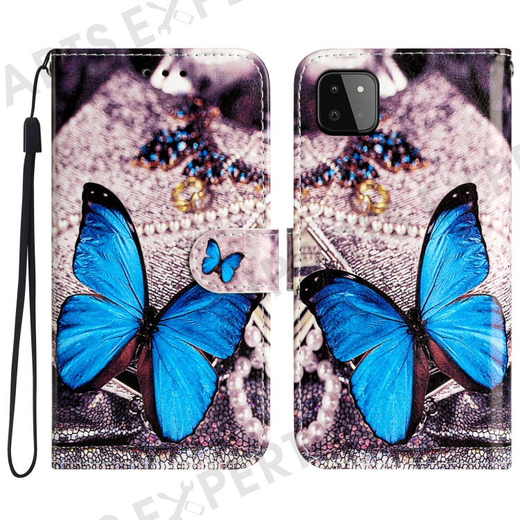 For Samsung Galaxy A22 5G (EU Version) Leather Wallet Full Protection Phone Case Pattern Printing Stand Cover - Blue Butterfly