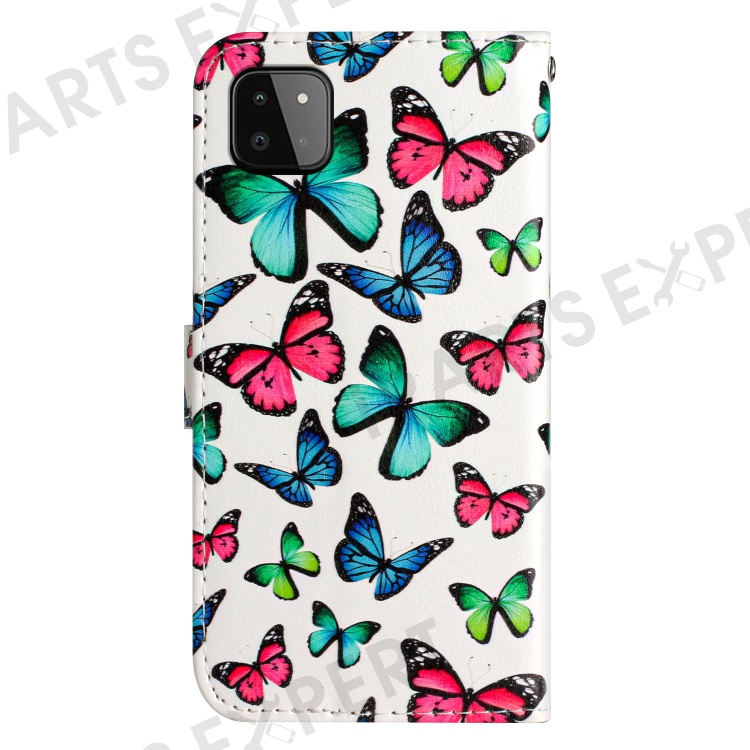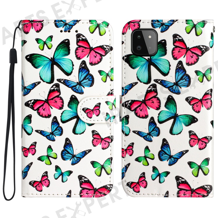 For Samsung Galaxy A22 5G (EU Version) Leather Wallet Full Protection Phone Case Pattern Printing Stand Cover - Colorful Butterfly