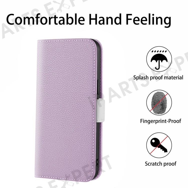 For Samsung Galaxy A22e Candy Color PU Leather Protective Case Litchi Texture Phone Stand Wallet Cover - Light Purple
