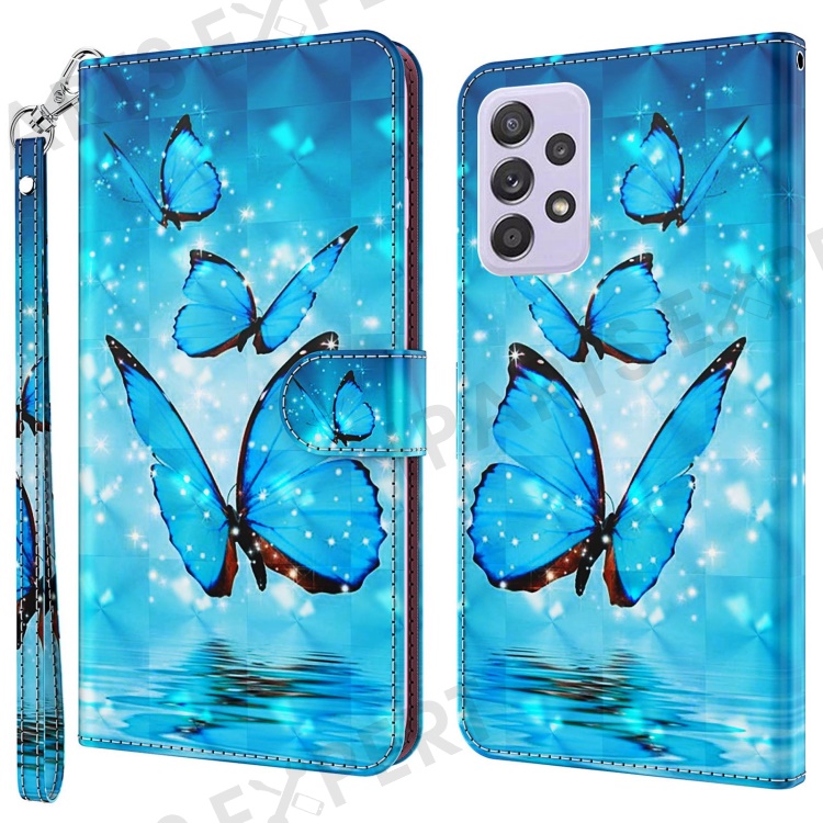 For Samsung Galaxy A23 5G (Global Version) / 4G 3D Pattern Printing Wallet Case PU Leather Magnetic Flip Stand Fully Protection Phone Cover with Strap - Blue Butterflies