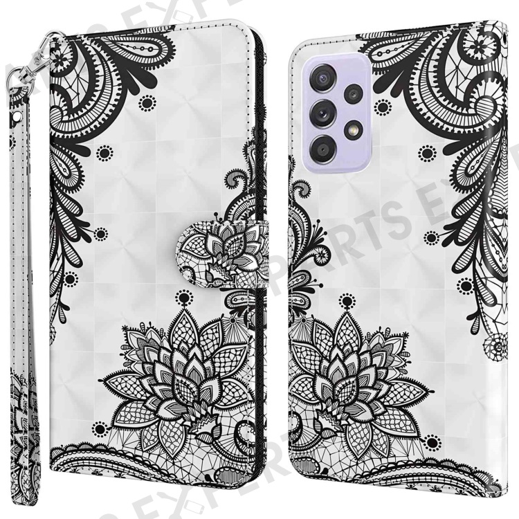 For Samsung Galaxy A23 5G (Global Version) / 4G 3D Pattern Printing Wallet Case PU Leather Magnetic Flip Stand Fully Protection Phone Cover with Strap - Lace Flower