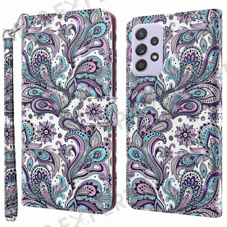 For Samsung Galaxy A23 5G (Global Version) / 4G 3D Pattern Printing Wallet Case PU Leather Magnetic Flip Stand Fully Protection Phone Cover with Strap - Purple Impatiens