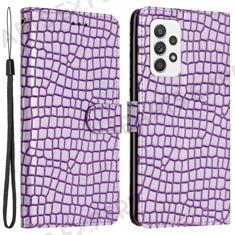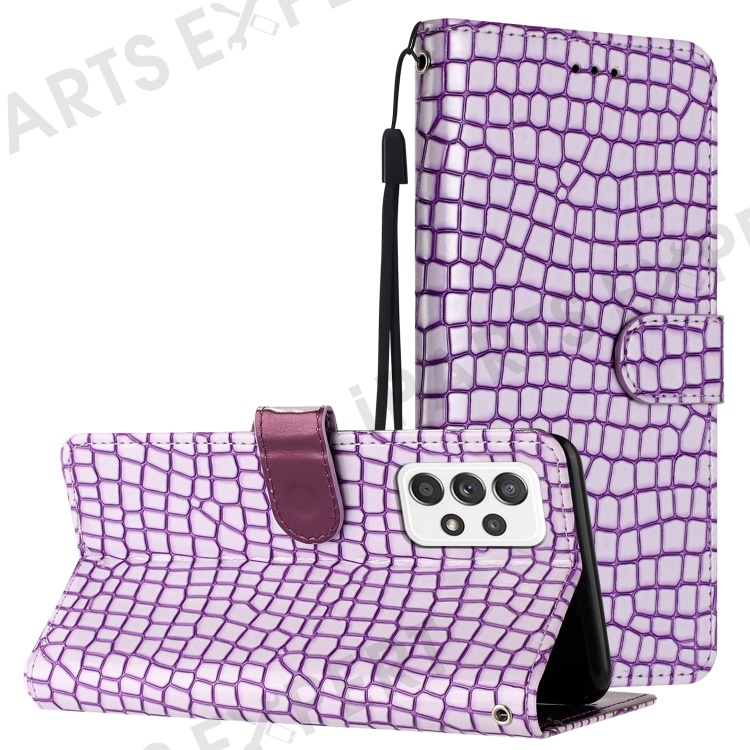 For Samsung Galaxy A23 4G / A23 5G (Global Version) Crocodile Texture Flip Shell PU Leather Stand Phone Wallet Case - Purple