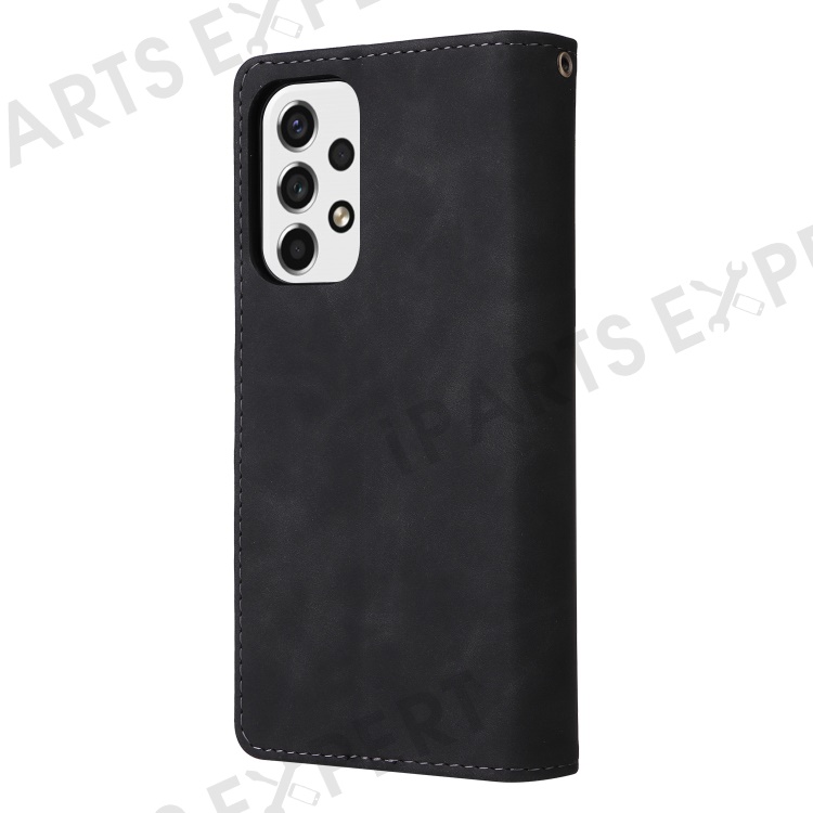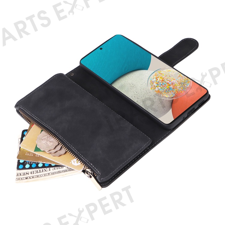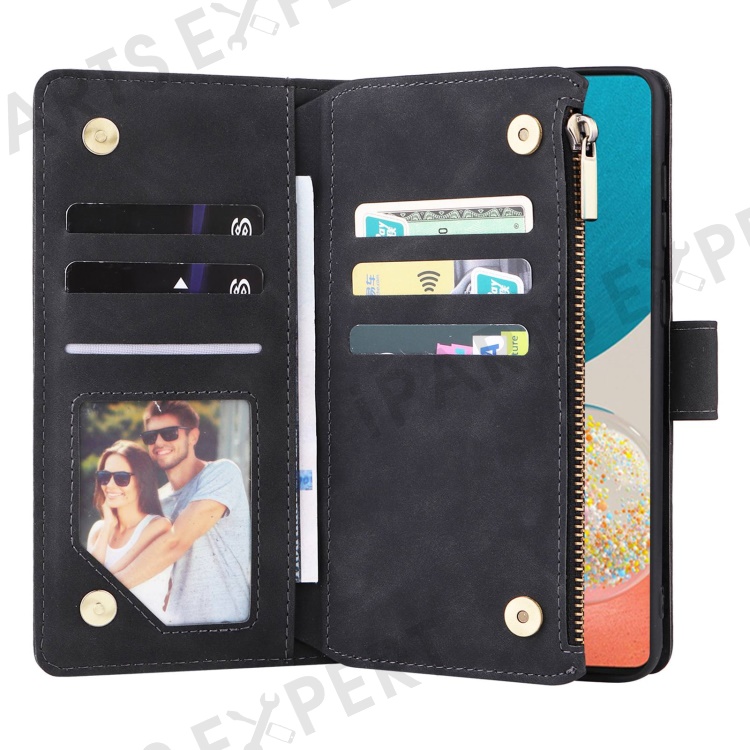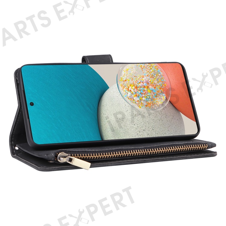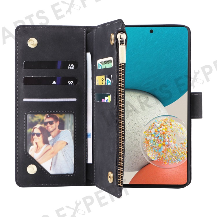 For Samsung Galaxy A23 5G (Global Version) / A23 4G / M23 5G / F23 5G Multiple Card Slots Zipper Pocket PU Leather Phone Stand Case Magnetic Clasp Wallet Cover - Black