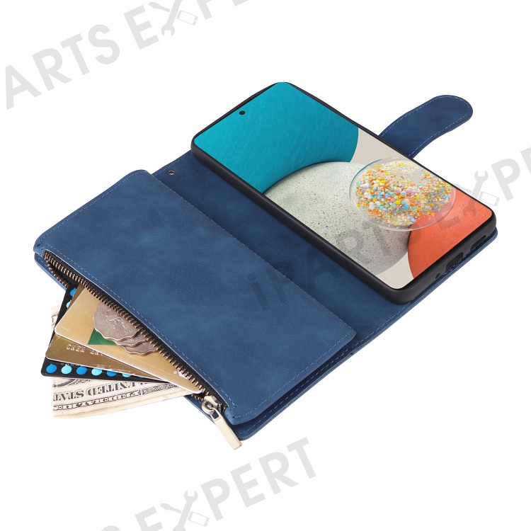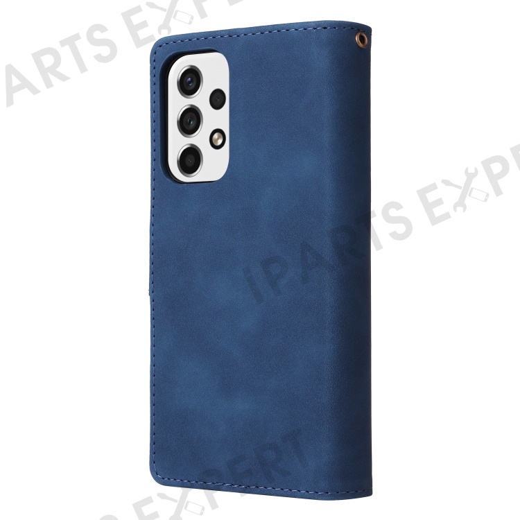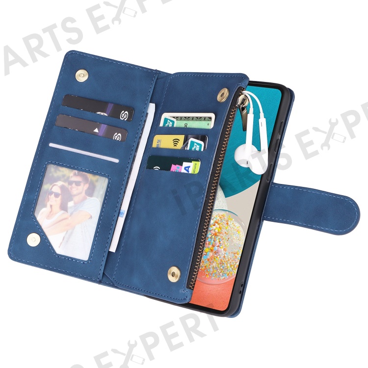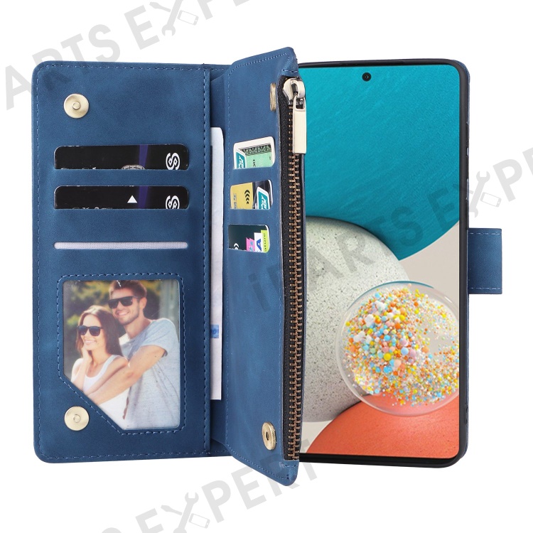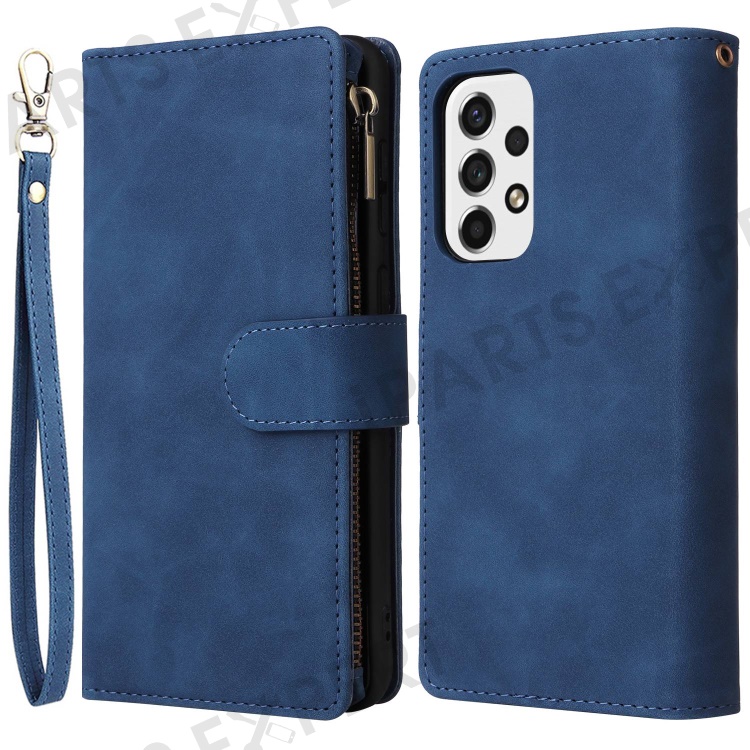 For Samsung Galaxy A23 5G (Global Version) / A23 4G / M23 5G / F23 5G Multiple Card Slots Zipper Pocket PU Leather Phone Stand Case Magnetic Clasp Wallet Cover - Blue