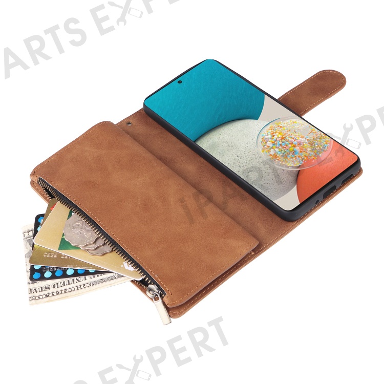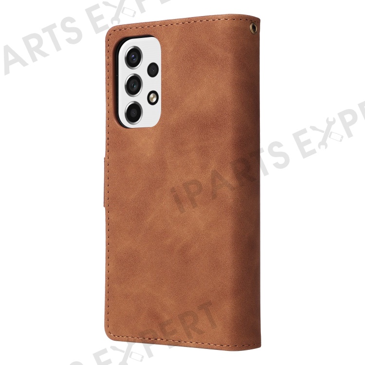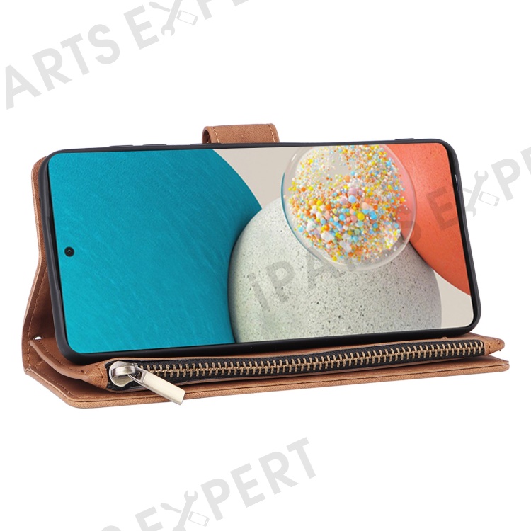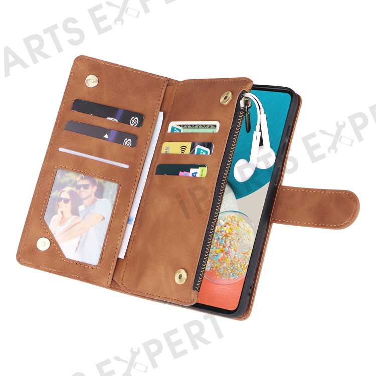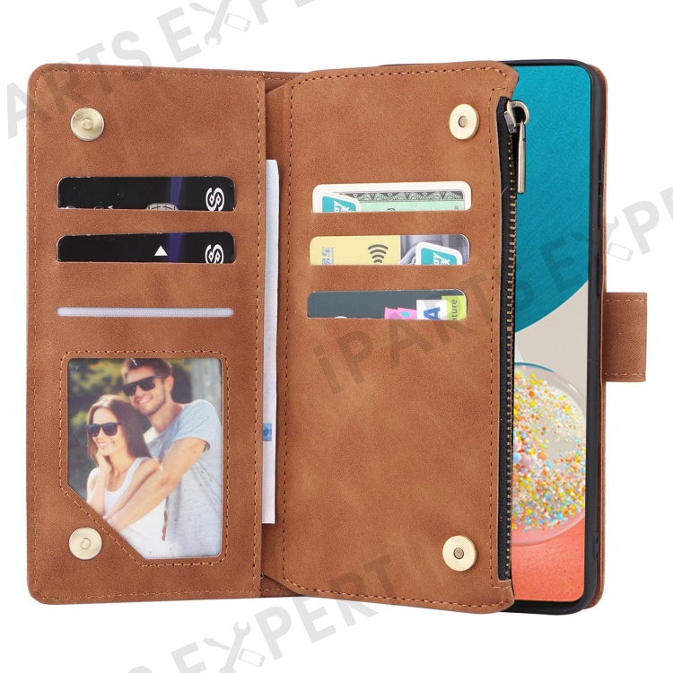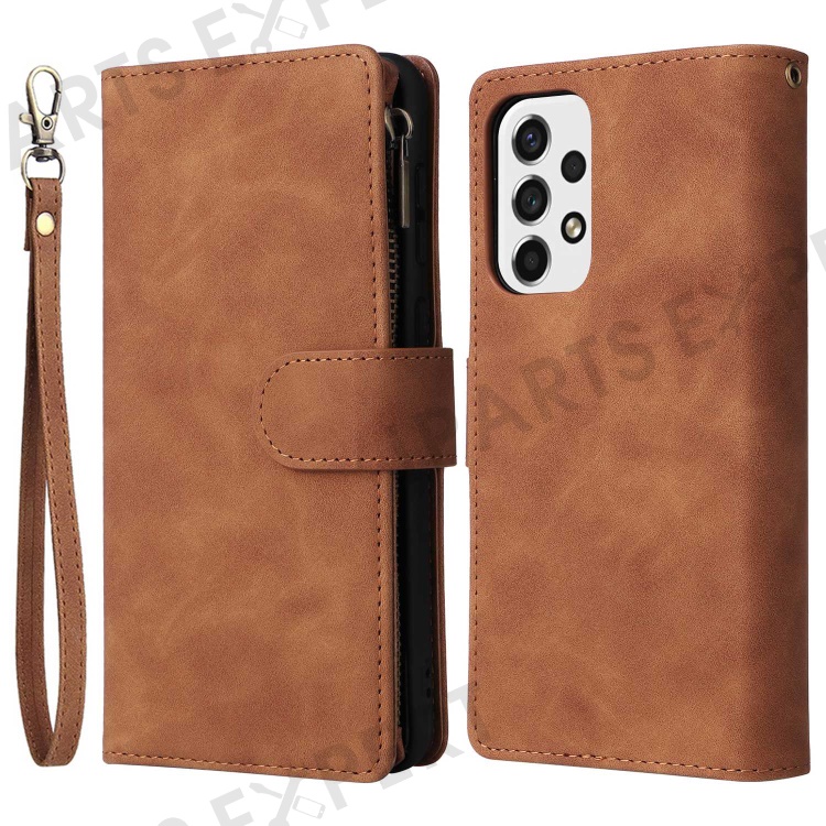 For Samsung Galaxy A23 5G (Global Version) / A23 4G / M23 5G / F23 5G Multiple Card Slots Zipper Pocket PU Leather Phone Stand Case Magnetic Clasp Wallet Cover - Brown
