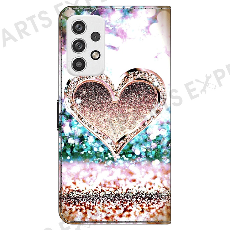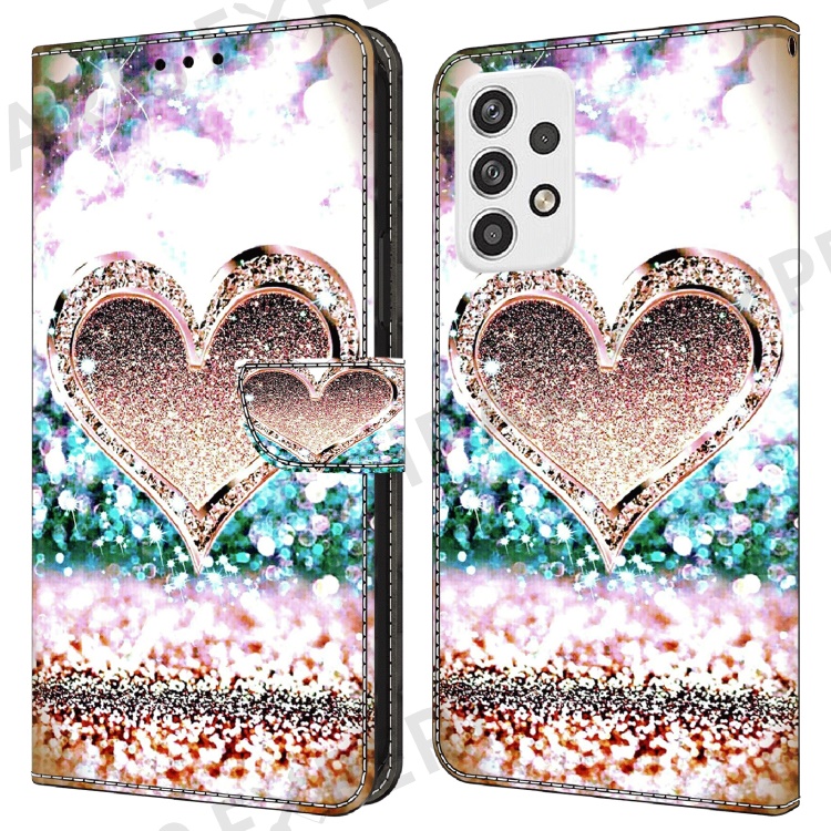For Samsung Galaxy A23 5G (Global Version) Leather Flip Case Printed 3D Pattern Stand Wallet Phone Cover - Pink Diamond Heart