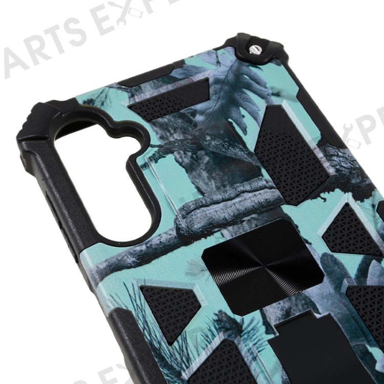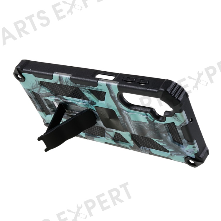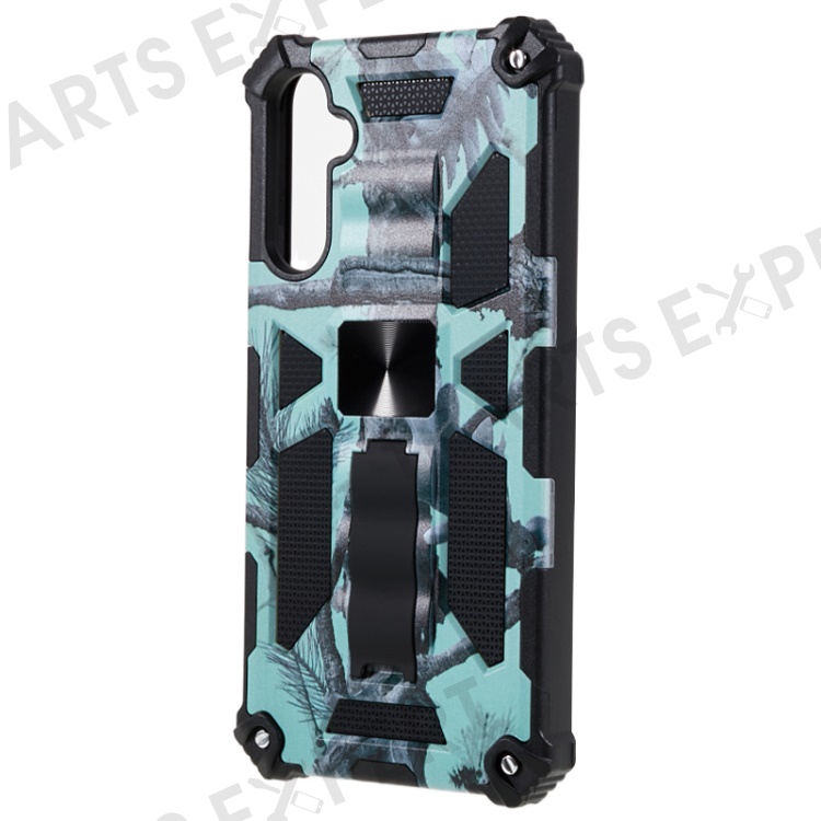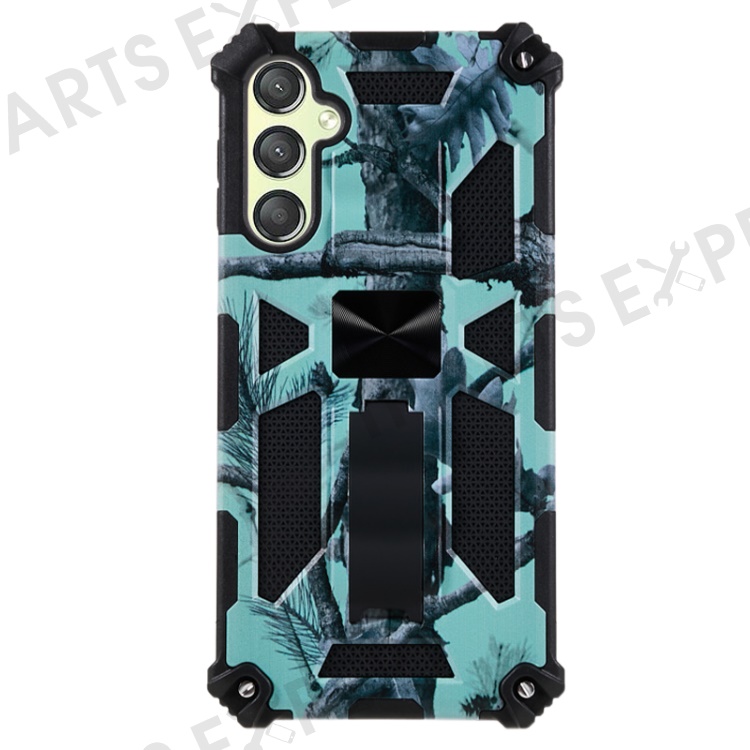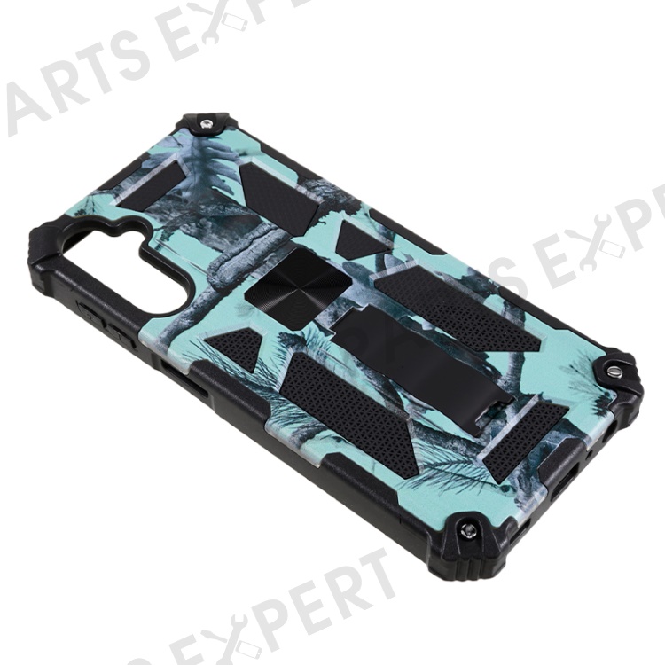 For Samsung Galaxy A24 4G (162.1 x 77.6 x 8.3mm) PC+TPU Phone Case Camouflage Kickstand Cell Phone Cover - Light Green
