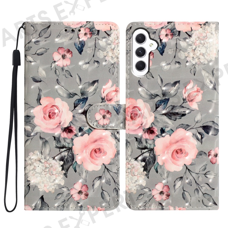 For Samsung Galaxy A25 5G (Global) (161.0 x 76.5 x 8.3mm) Case PU Leather 3D Pattern Flip Wallet Phone Cover - Flowers