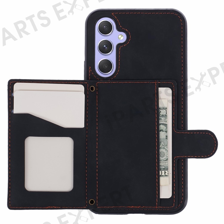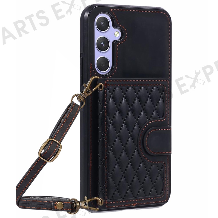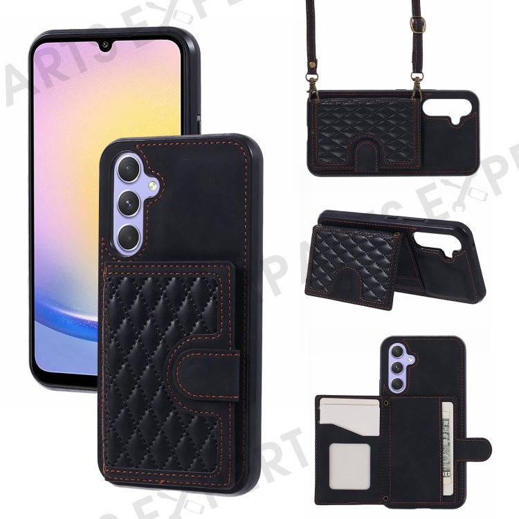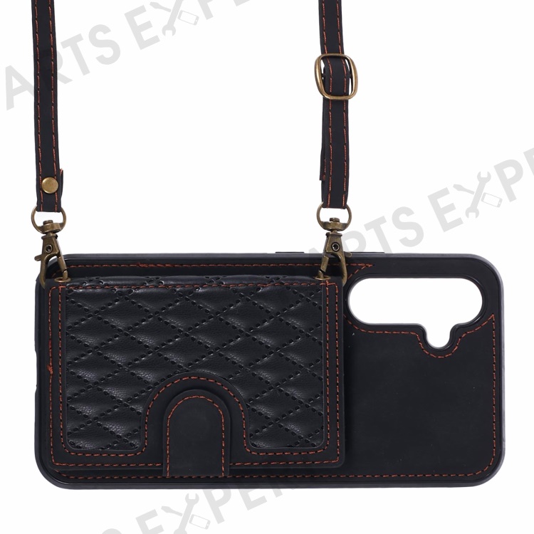 For Samsung Galaxy A25 5G (Global) (161.0 x 76.5 x 8.3mm) Cell Phone Case PU Leather+TPU Card Holder Back Cover with Long Strap - Black