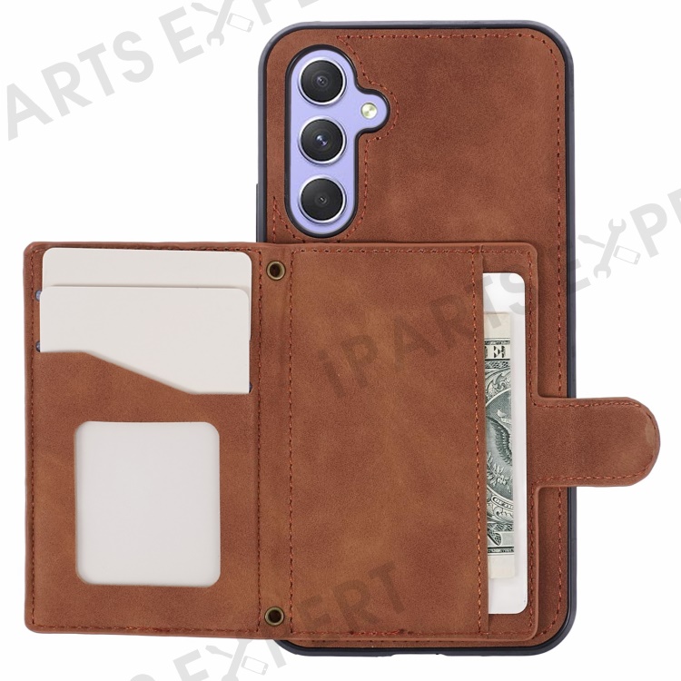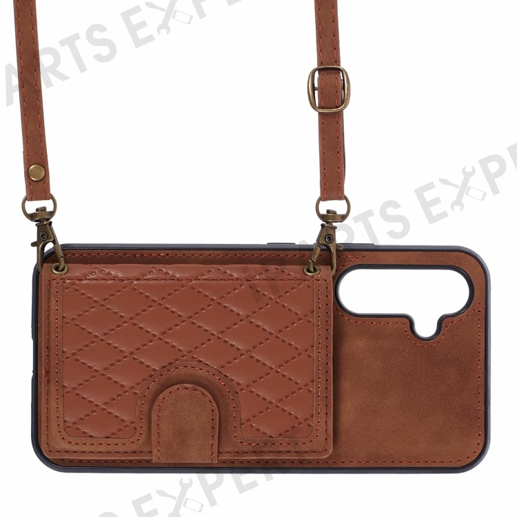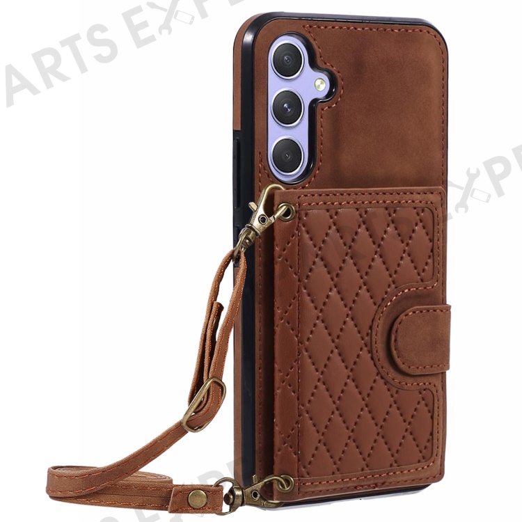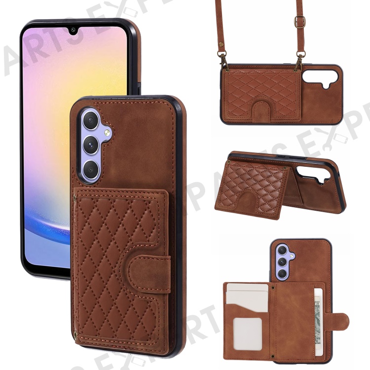 For Samsung Galaxy A25 5G (Global) (161.0 x 76.5 x 8.3mm) Cell Phone Case PU Leather+TPU Card Holder Back Cover with Long Strap - Brown