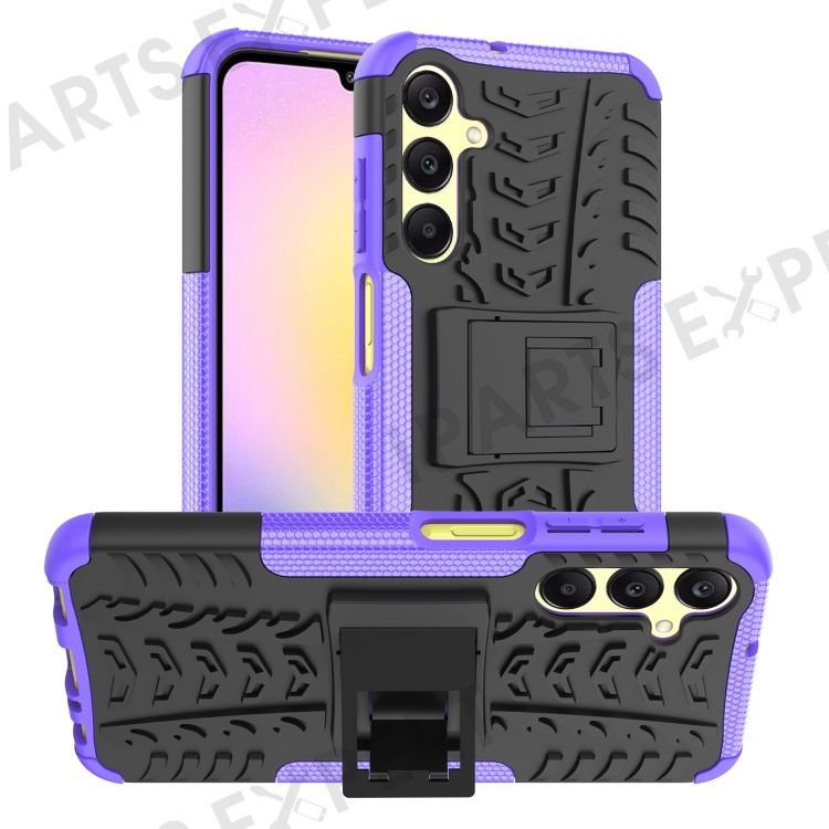 For Samsung Galaxy A25 5G (Global) (161.0 x 76.5 x 8.3mm) Case PC+TPU 2-in-1 Tire Texture Cover with Kickstand - Purple