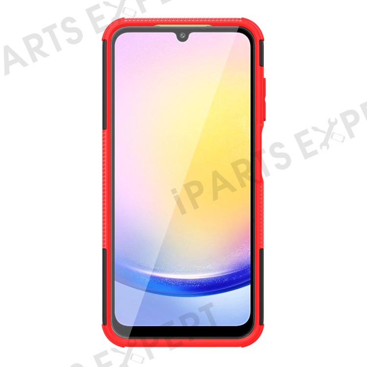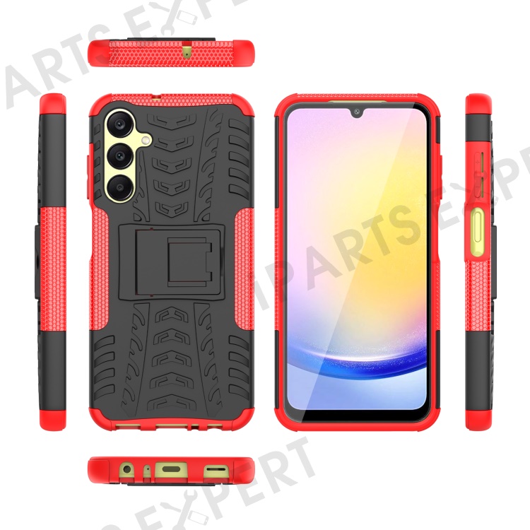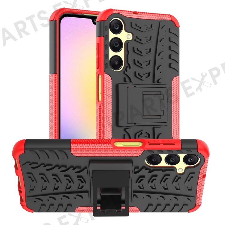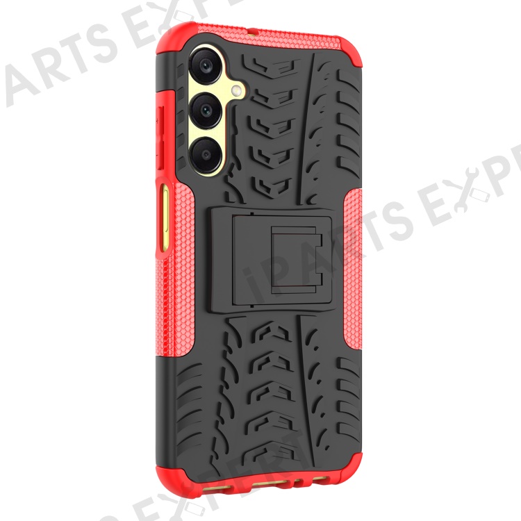 For Samsung Galaxy A25 5G (Global) (161.0 x 76.5 x 8.3mm) Case PC+TPU 2-in-1 Tire Texture Cover with Kickstand - Red