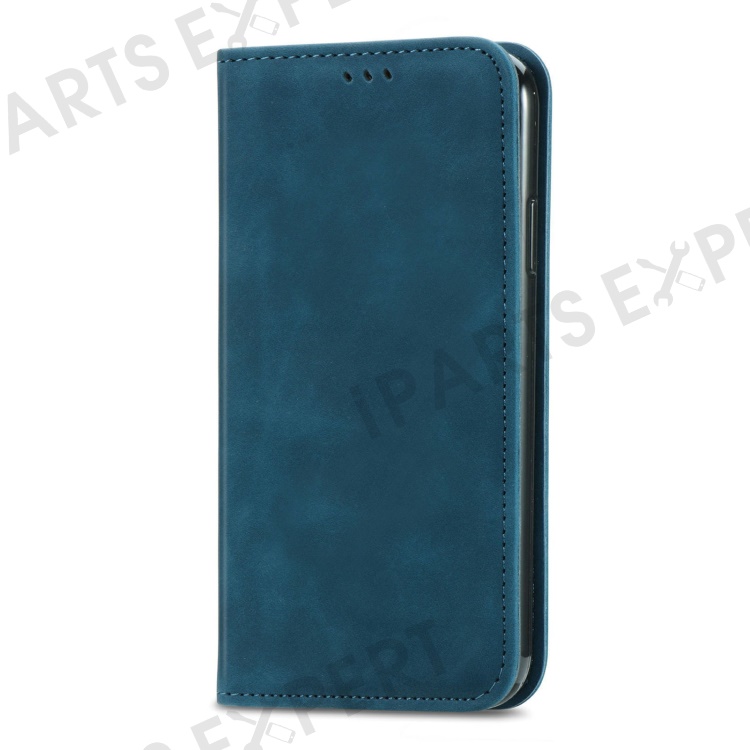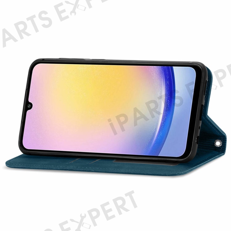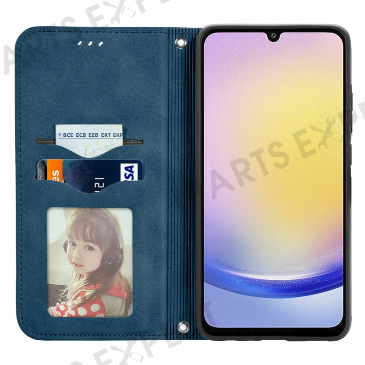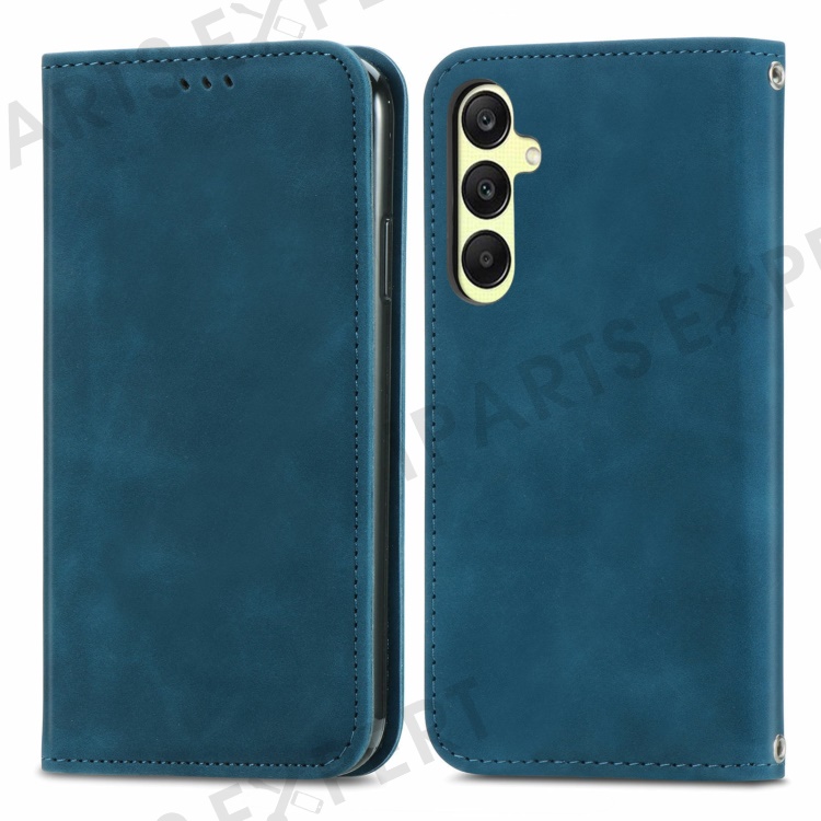 For Samsung Galaxy A25 5G (Global) (161.0 x 76.5 x 8.3mm) Case Skin Touch Feeling Card Slot Leather Phone Cover Stand Magnetic Absorption - Dark Blue
