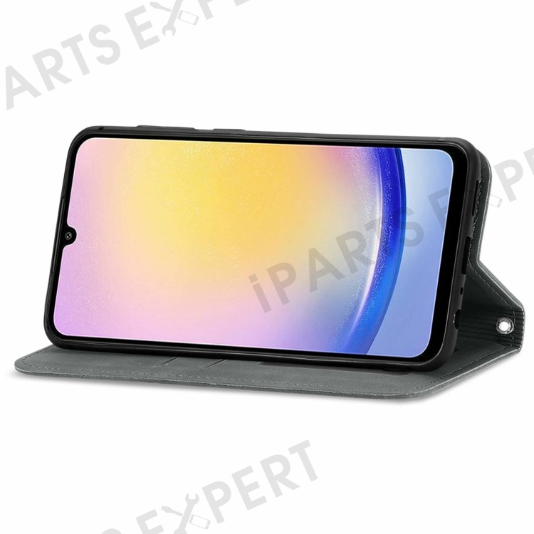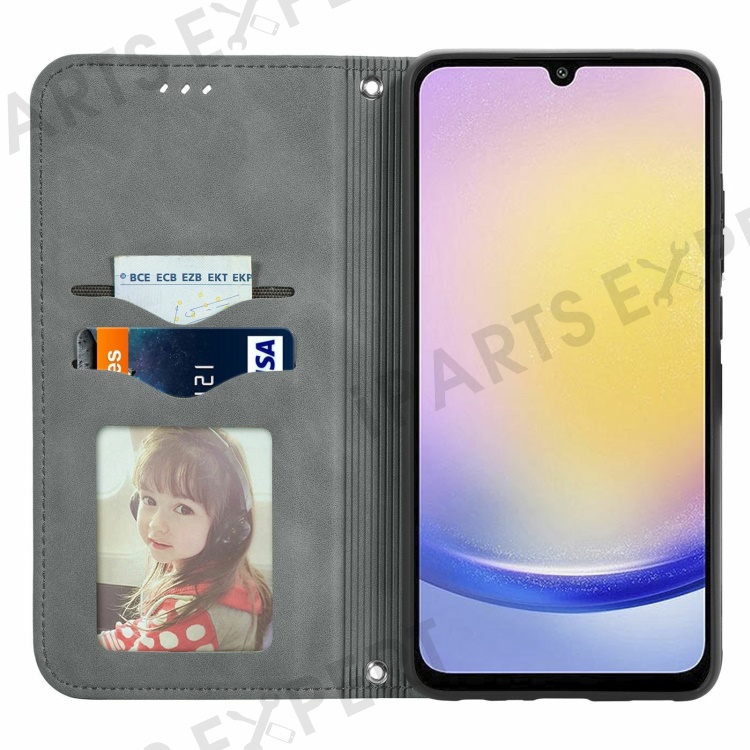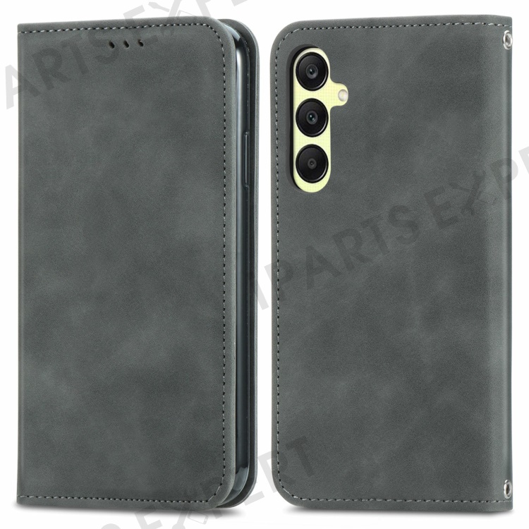 For Samsung Galaxy A25 5G (Global) (161.0 x 76.5 x 8.3mm) Case Skin Touch Feeling Card Slot Leather Phone Cover Stand Magnetic Absorption - Grey