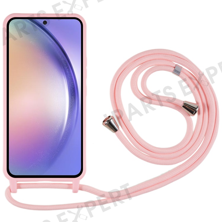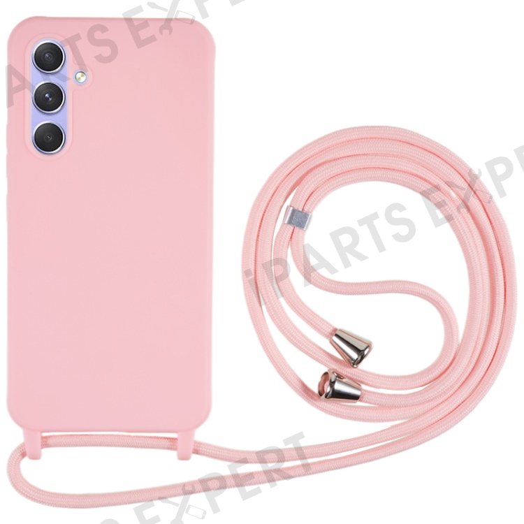For Samsung Galaxy A25 5G (Global) (161.0 x 76.5 x 8.3mm) TPU Case Crossbody Slim Thin Protective Shell with Lanyard - Pink