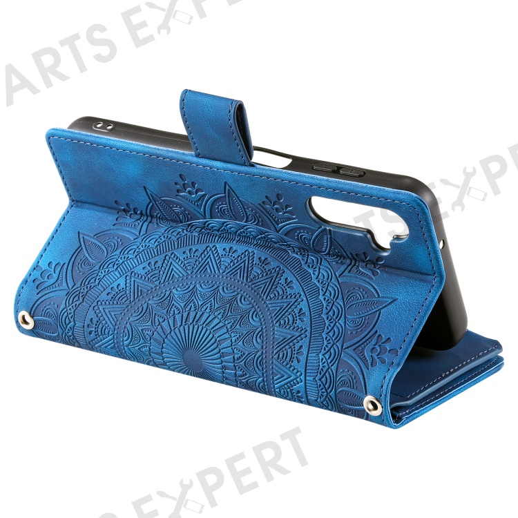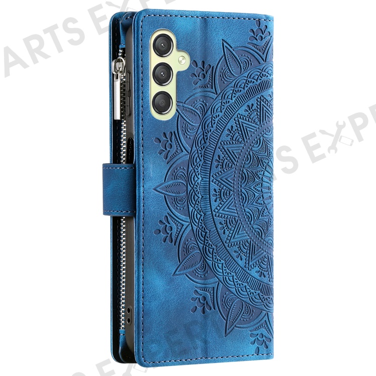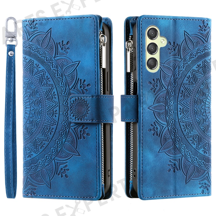 For Samsung Galaxy A25 5G (Global) (161.0 x 76.5 x 8.3mm) Wallet Zipper Leather Stand Flip Cover with Strap - Blue
