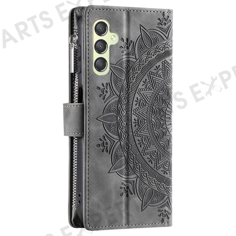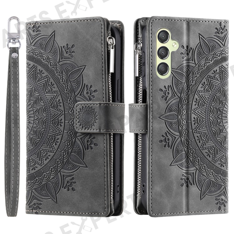 For Samsung Galaxy A25 5G (Global) (161.0 x 76.5 x 8.3mm) Wallet Zipper Leather Stand Flip Cover with Strap - Grey