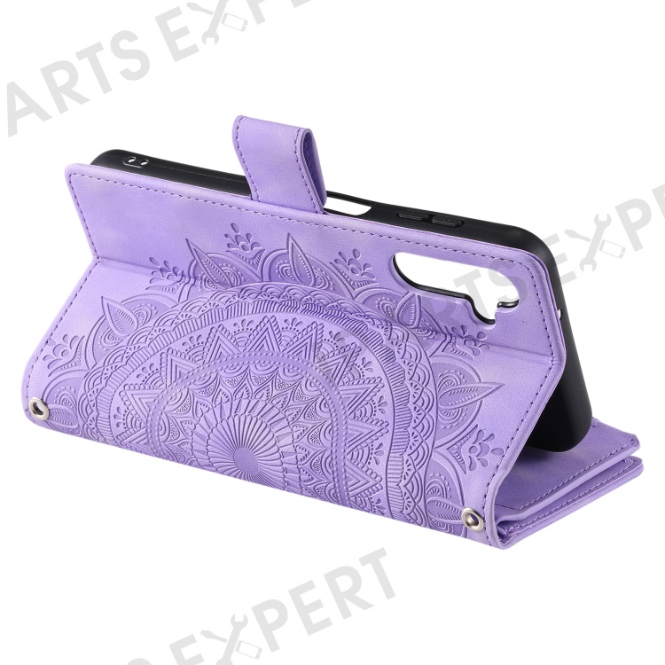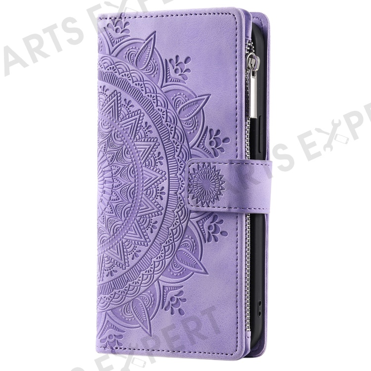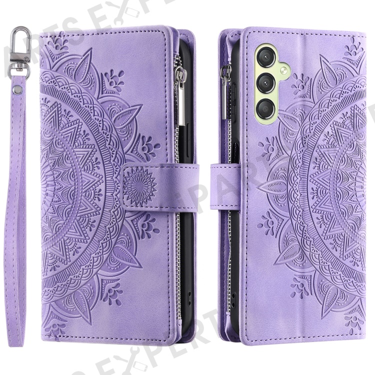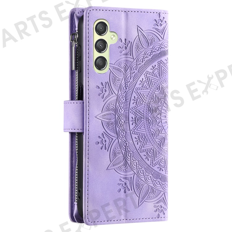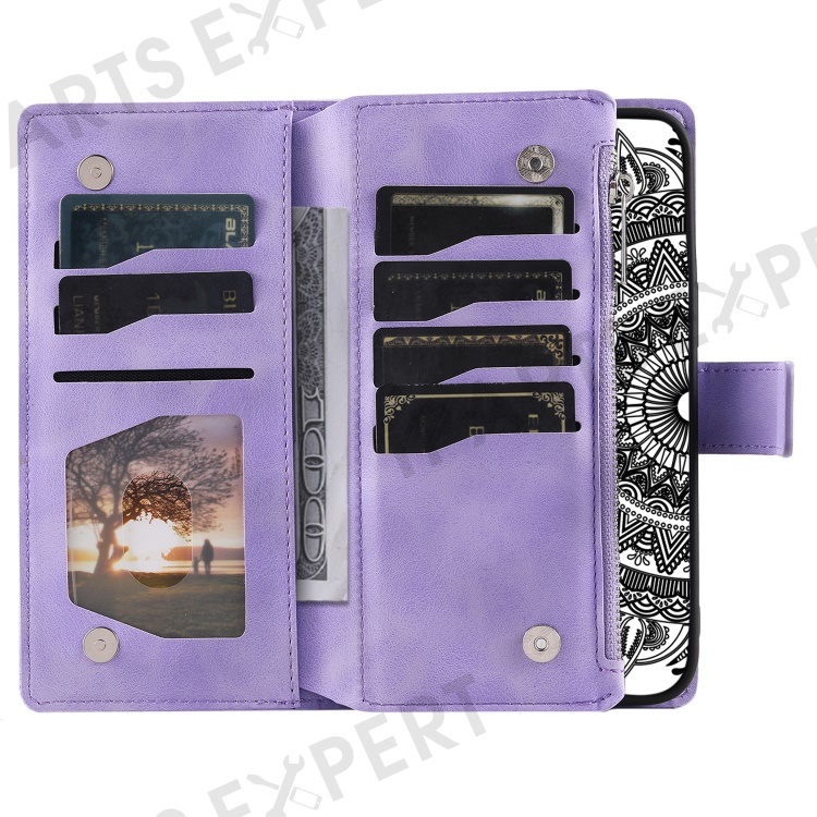 For Samsung Galaxy A25 5G (Global) (161.0 x 76.5 x 8.3mm) Wallet Zipper Leather Stand Flip Cover with Strap - Purple